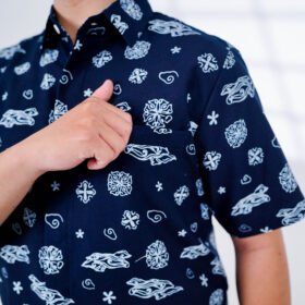 Batik Trusmi Hem Reguler – Motif Sachi AAB Navy KBT