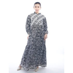 Batik Trusmi Dress Motif Mega Mendung – Gamis Kombinasi Liris MM HP
