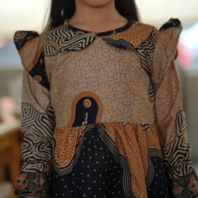 Batik Trusmi Gamis Anak – Motif Abstrak Aima Hitam MOP