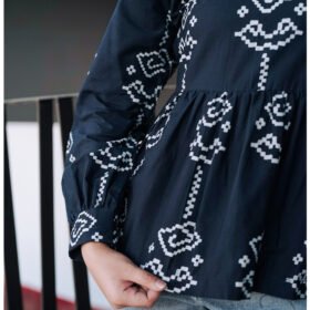 Batik Trusmi Blouse Zanira Koleksi Garatris Navy – Ramadhan Satin Premium Series