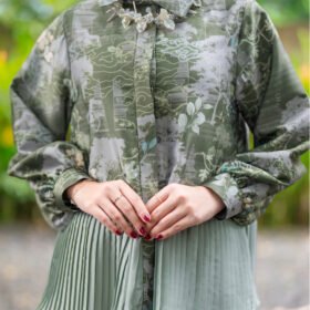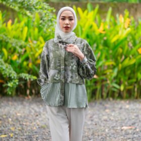 Batik Trusmi Blouse Zanira Koleksi Garatris – Ramadhan Satin Premium Hijau Sage