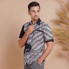 Batik Trusmi Hem Pria Motif Parang 1/2 Hitam DNG