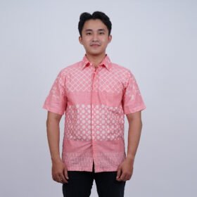 Batik Trusmi Hem Pria Motif IKN Warna Pink RJB
