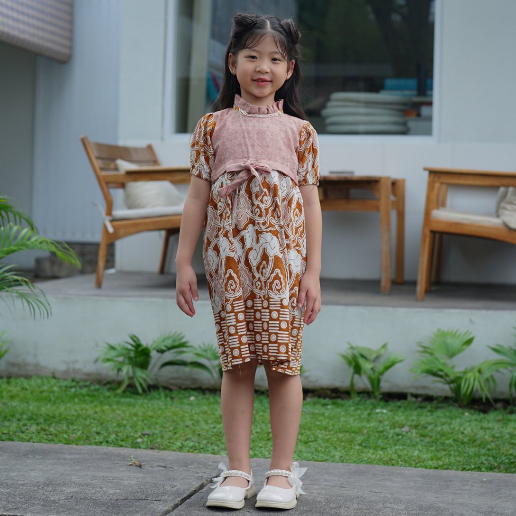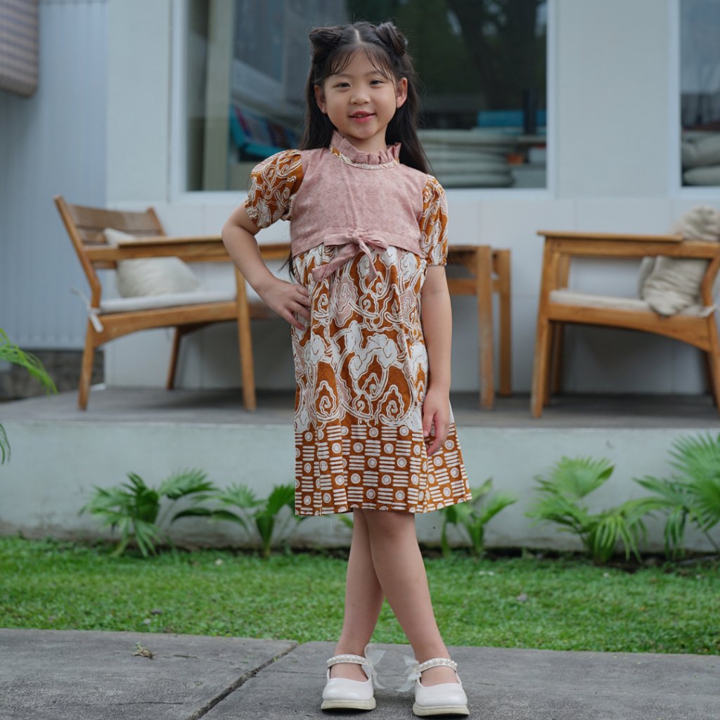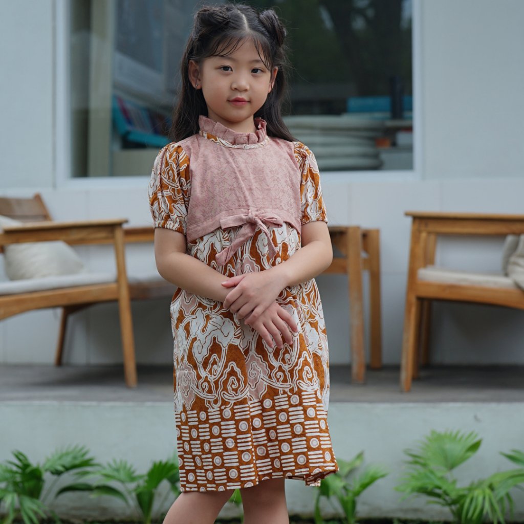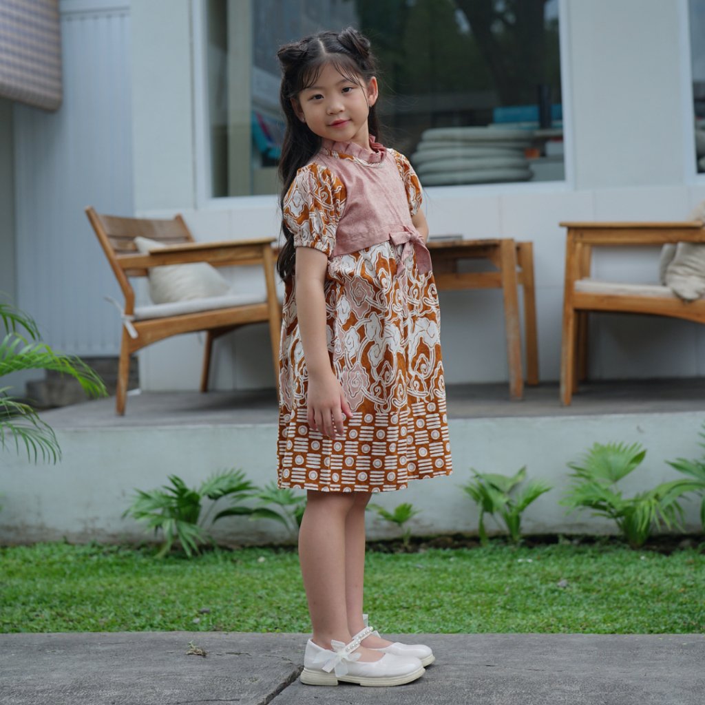 Batik Trusmi Dress Batik Anak Perempuan Motif Livia Cokelat