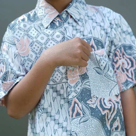 Batik Trusmi Atasan Hem Anak Motif Kombinasi Pastel BNA