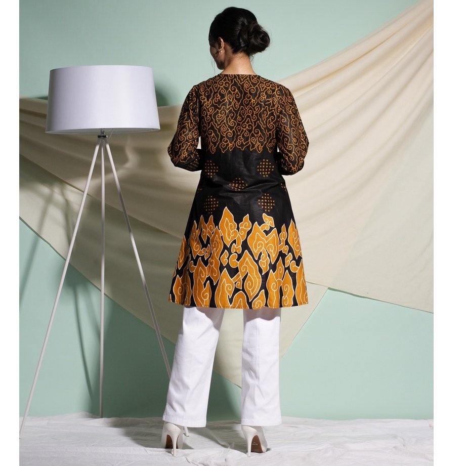 Tunik Teku hadir dengan desain modern yang dipadukan motif batik elegan, membuat penampilan tampak anggun dan stylish. Menggunakan bahan katun yang adem, ringan, dan nyaman dipakai seharian. Tunik ini belum berlapis furing, sehingga terasa lebih breathable dan tidak panas.
