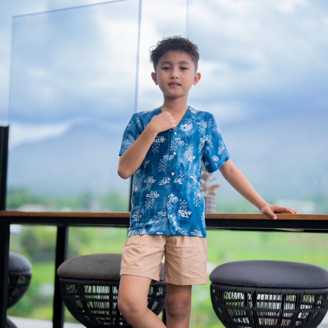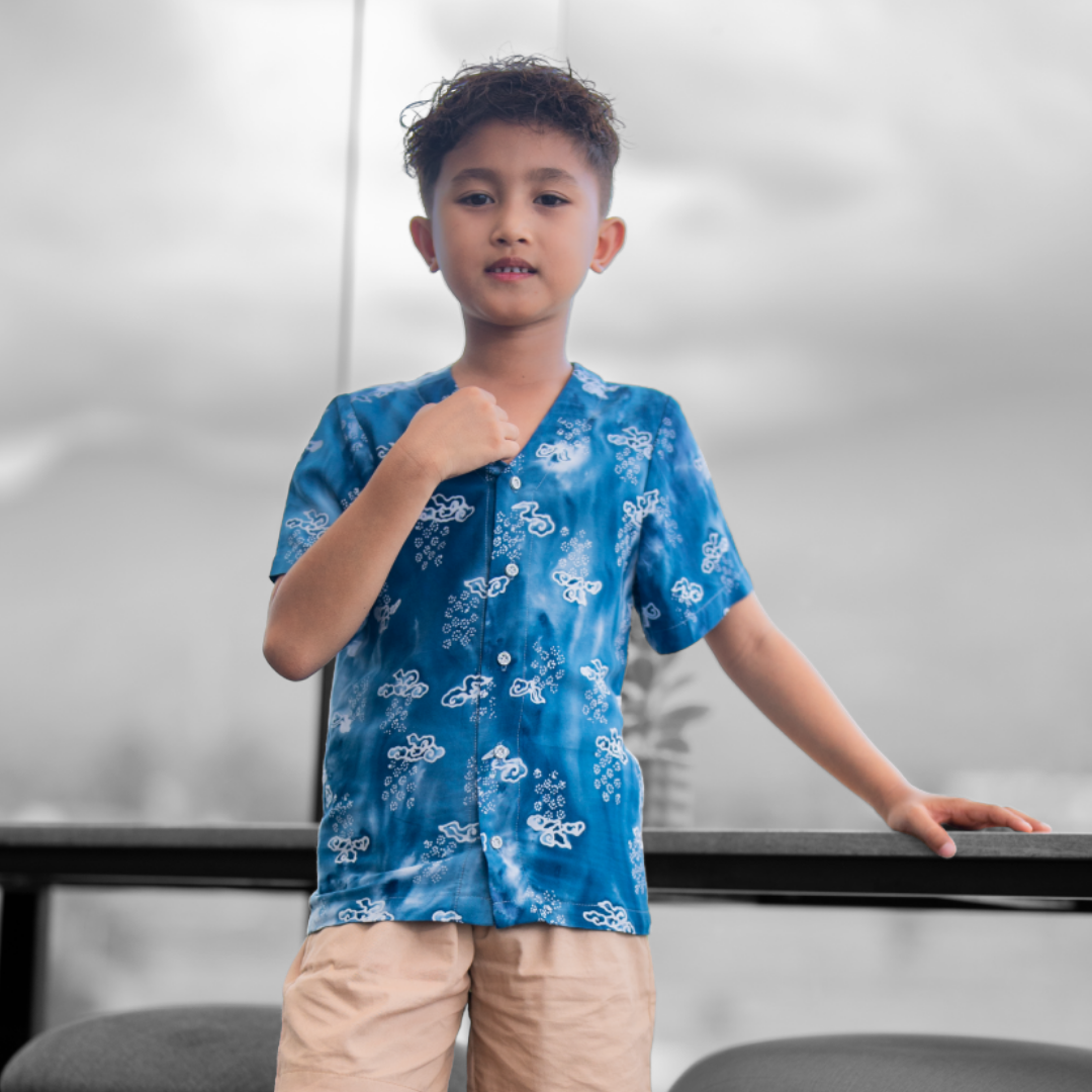 Kemeja Anak Sea Batik Trusmi Biru Sagara Series adalah kemeja batik anak bernuansa biru segara, nyaman dipakai untuk aktivitas harian hingga acara semi formal.