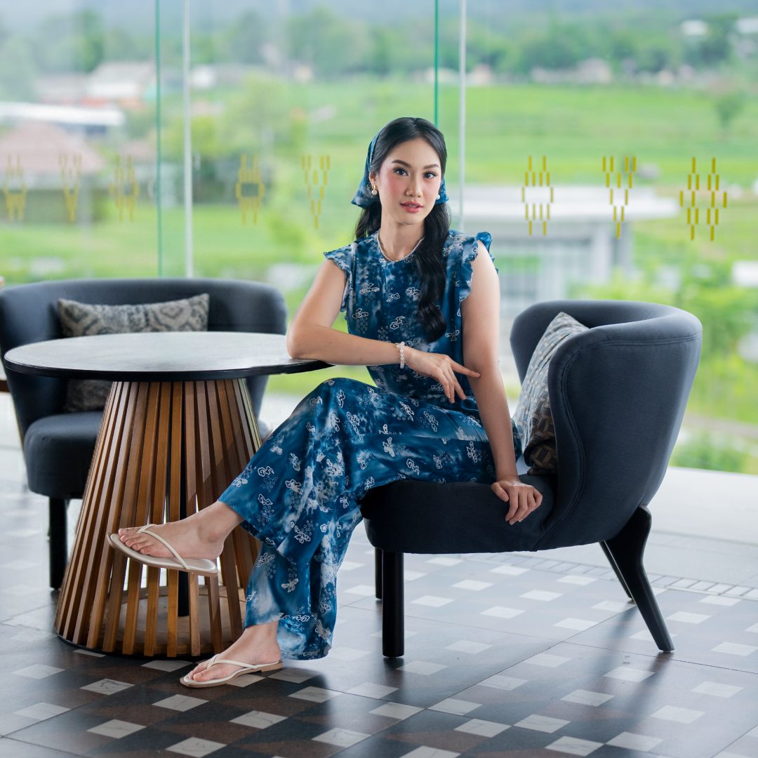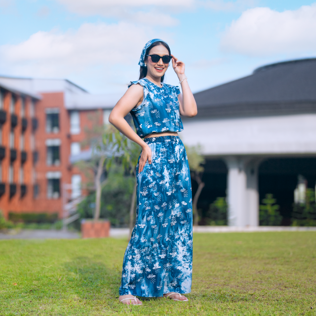 Batik Trusmi Biru Sagara Series – One Set Sea merupakan set batik wanita modern tanpa lengan dari Batik Trusmi yang menampilkan keindahan motif khas Cirebon dalam nuansa Biru Sagara yang segar dan menenangkan. Perpaduan warna biru yang lembut dengan motif batik tradisional menciptakan tampilan stylish, anggun, dan tetap timeless.