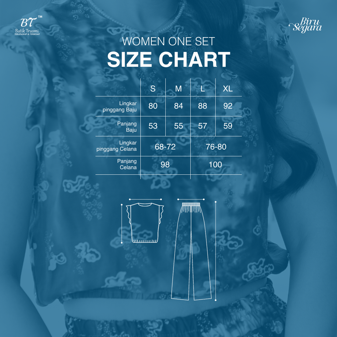 Jadilah yang pertama memberikan ulasan “Batik Trusmi Biru Sagara – One Set Sea Batik Wanita”
