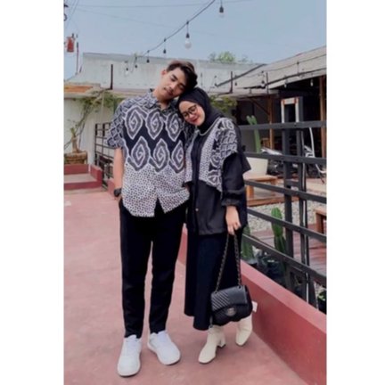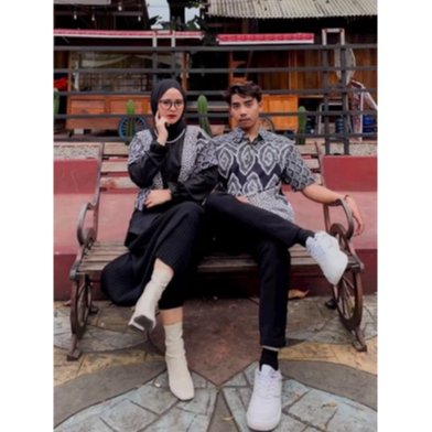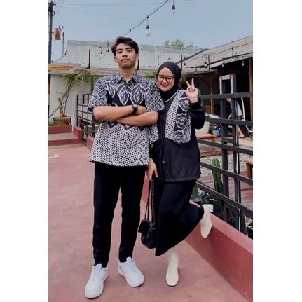 Batik Trusmi Couple Set Kemeja & Blouse Batik PJ Medmen Hitam JL
