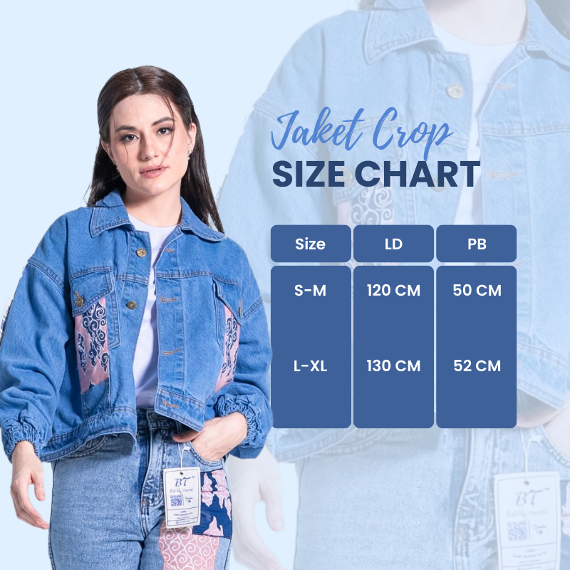 Jaket Crop Denim Kombinasi Batik  menghadirkan perpaduan sempurna antara gaya modern dan keanggunan tradisional. Terbuat dari bahan denim premium yang kuat dan nyaman, dipadukan dengan motif batik khas Cirebon yang menambah sentuhan elegan pada setiap detailnya. Jeans jadi “must have item” dalam pilihan busana sehari-hari. Kesan jeans yang timeless jadi daya tarik dalam trend untuk dipaduin sama batik yang timeless jug