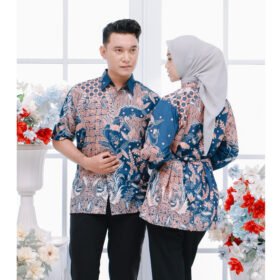 Batik Trusmi Set Couple Blouse Batik & Hem Batik Motif Kombinasi Gribik Bunga Biru BUL