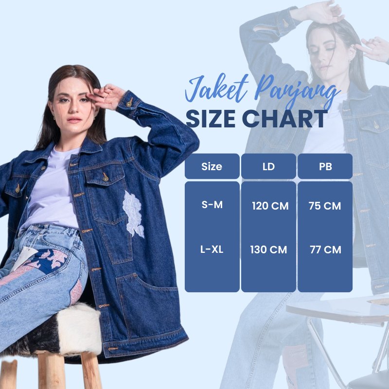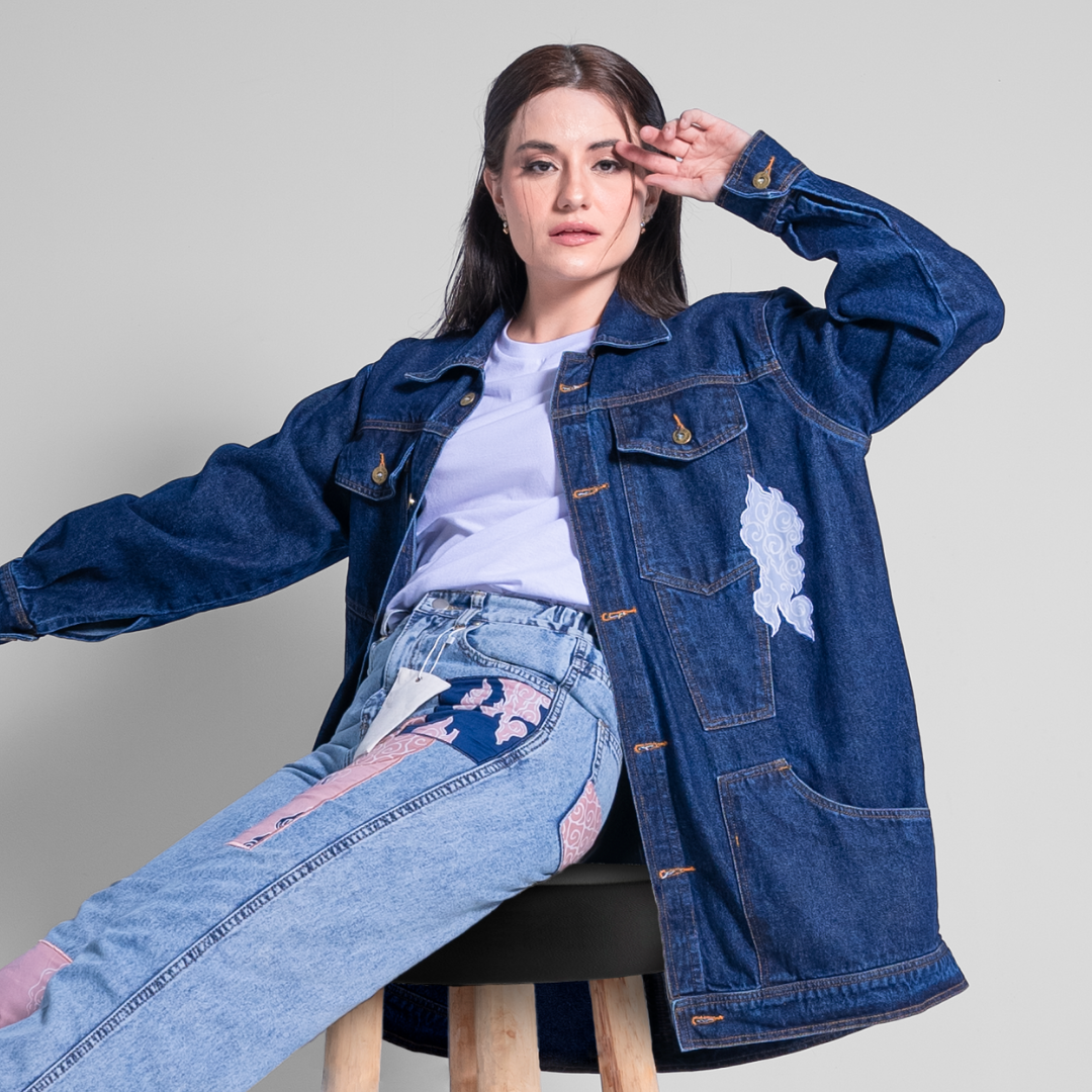 Model jaket panjang memberikan tampilan anggun dan berkelas, cocok digunakan untuk berbagai kesempatan, mulai dari acara kasual hingga semi-formal. Warna dan corak batik Mega Mendung yang khas menjadikan setiap jaket memiliki karakter unik dan eksklusif. Jeans jadi “must have item” dalam pilihan busana sehari-hari. Kesan jeans yang timeless jadi daya tarik dalam trend untuk dipaduin sama batik yang timeless juga