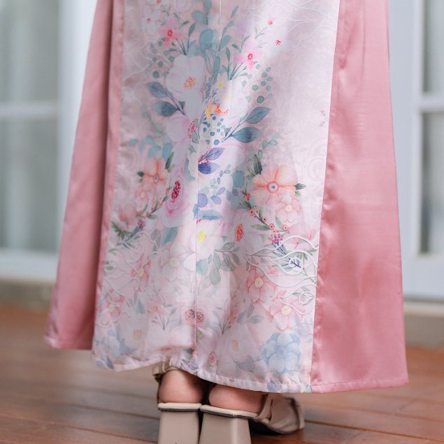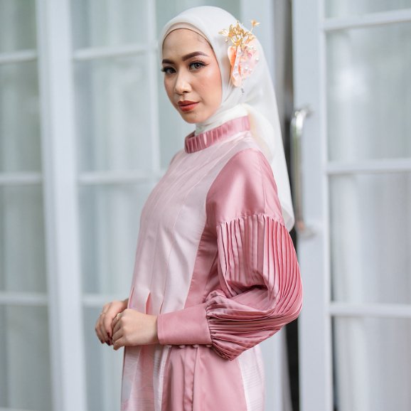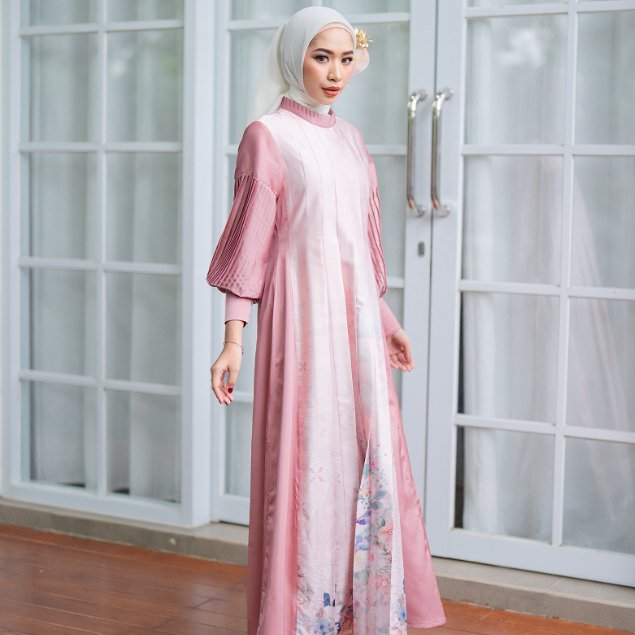 Batik Trusmi Dress Panjang Lebaran Batik Garatris Series – Ravaya Pink Satin Koleksi Ramadhan