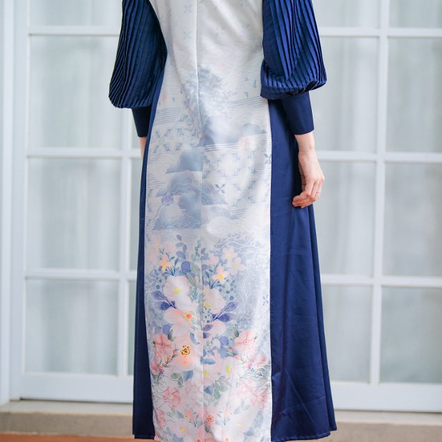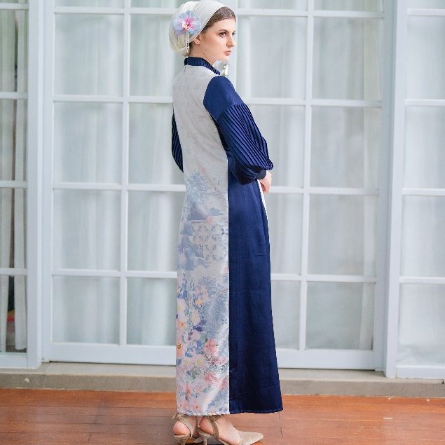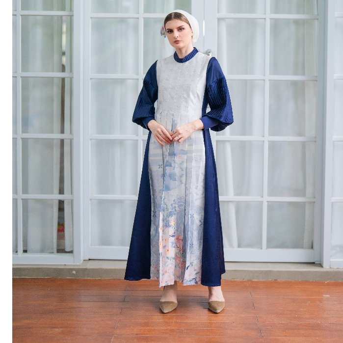Dress ini menggabungkan desain klasik yang lembut dengan sentuhan kontemporer melalui kombinasi warna navy yang berwibawa dan motif floral pastel yang feminin. Terbuat dari satin premium berkualitas tinggi, Ravaya Dress memberikan kenyamanan maksimal dengan tekstur lembut dan jatuh sempurna di tubuh. Detail lipit pada lengan menambah kesan mewah dan struktural, sementara bagian depan dan belakang dress dihiasi motif batik eksklusif bernuansa lembut yang memancarkan pesona elegan dan tenang.