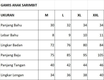 *Toleransi ukuran 2-4cm dari angka yang tertera