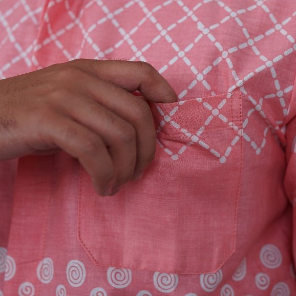 Batik Trusmi Hem Pria Motif IKN Warna Pink RJB