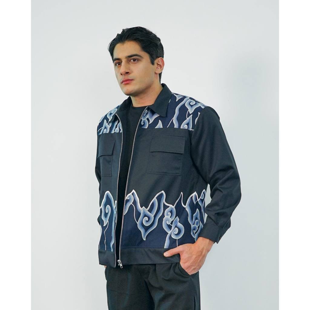 Jaket batik pria premium motif Mega Mendung Clark KLRY. Elegan, eksklusif, nyaman dipakai untuk acara formal dan kasual.