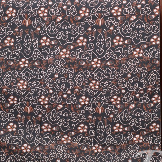 Kain katun Mega Mendung Bayanaka hitam HBT, motif klasik Cirebon bernuansa hitam elegan untuk busana berkelas.
