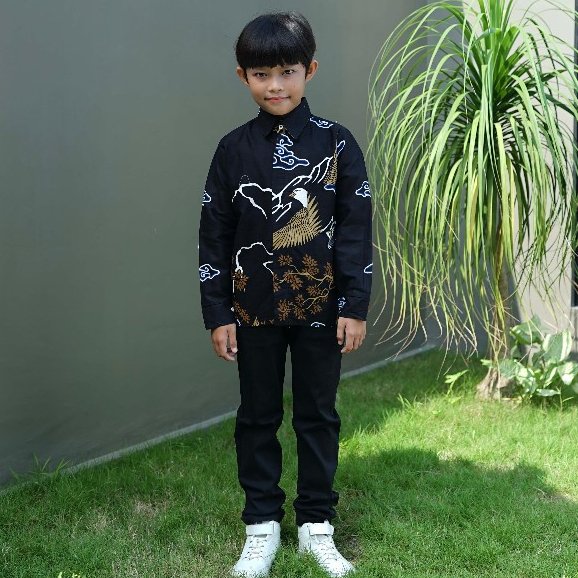 Batik Trusmi Kemeja Anak Motif Elang RJW Hitam
