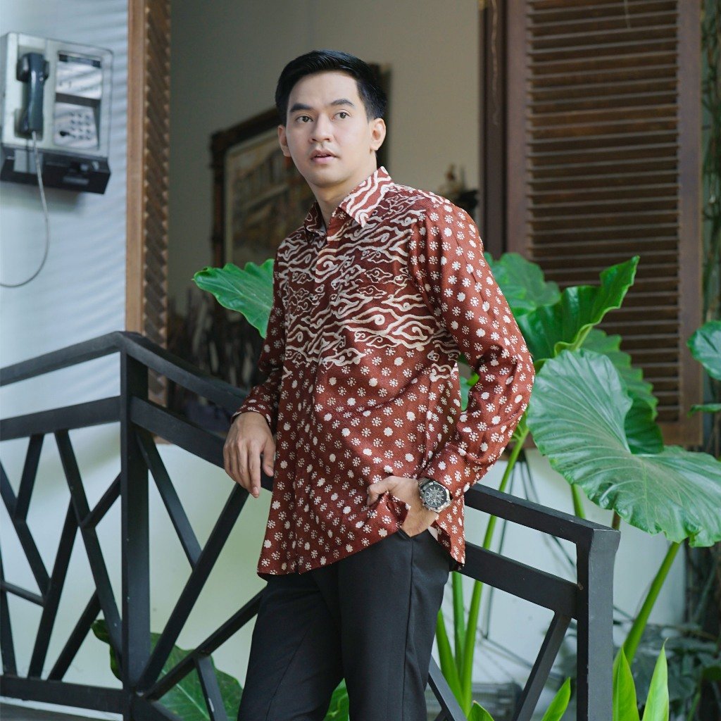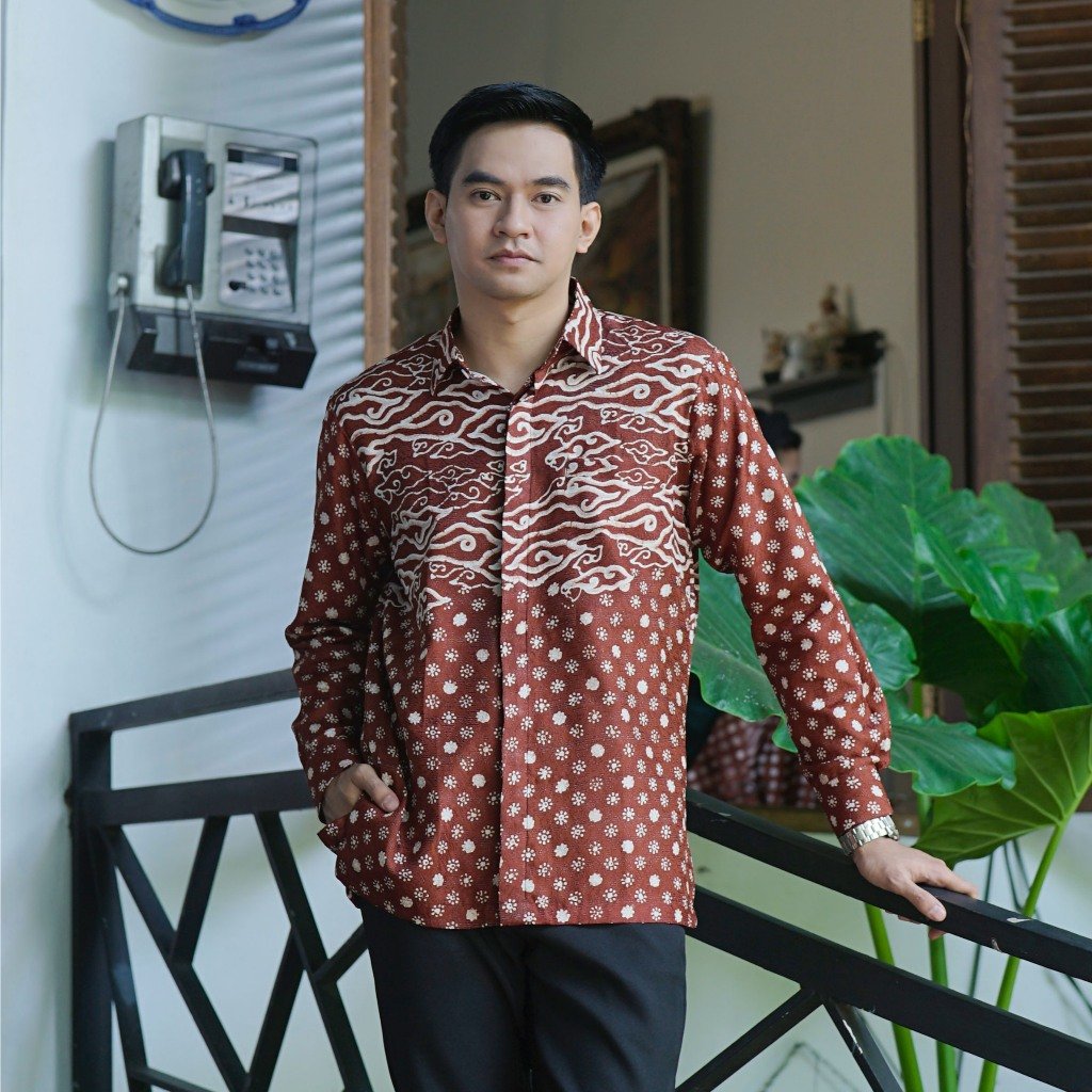 Kemeja Batik Mega Mendung Kalifa Cokelat, cocok untuk Ramadhan dan Idul Fitri. Nyaman, elegan, dan berkualitas premium.