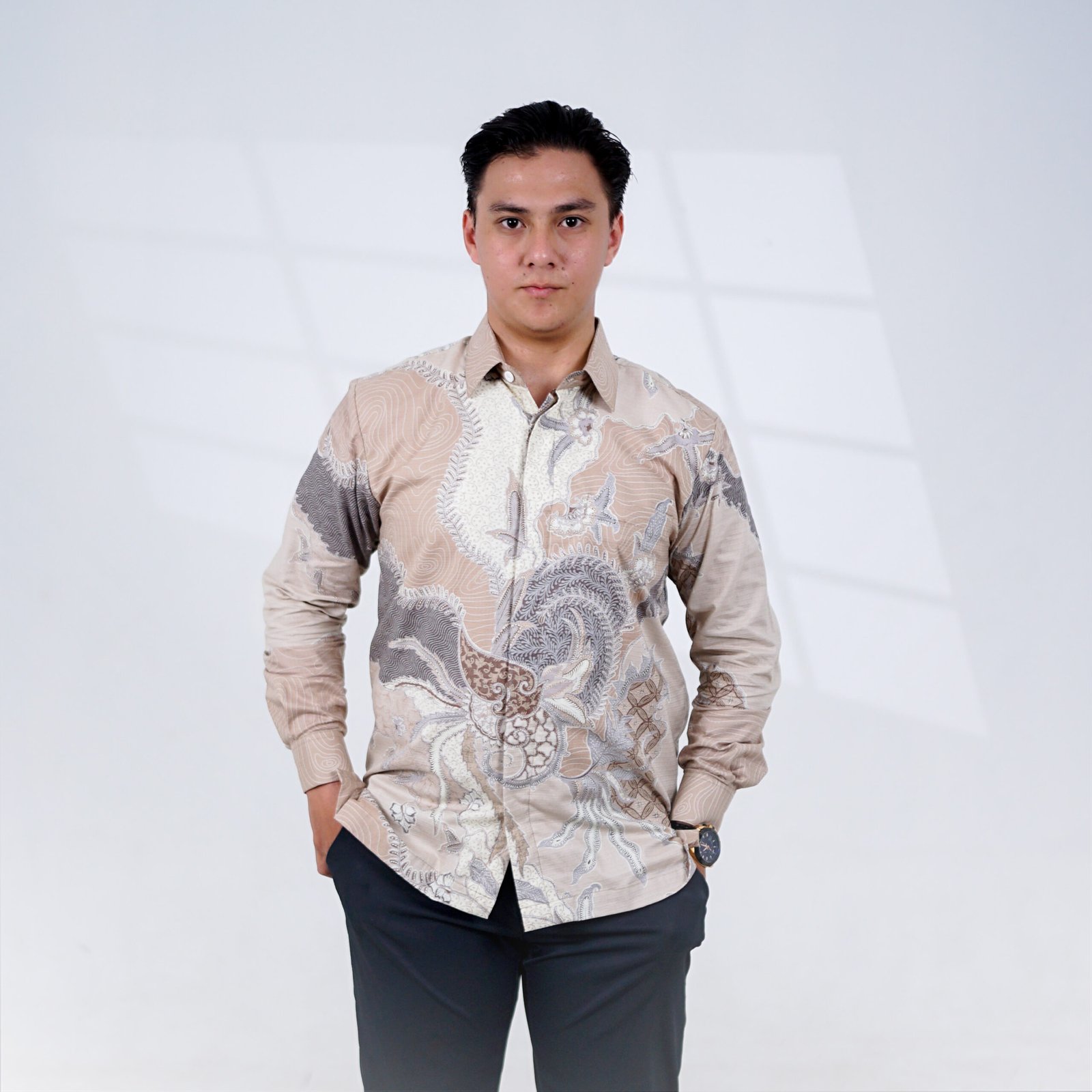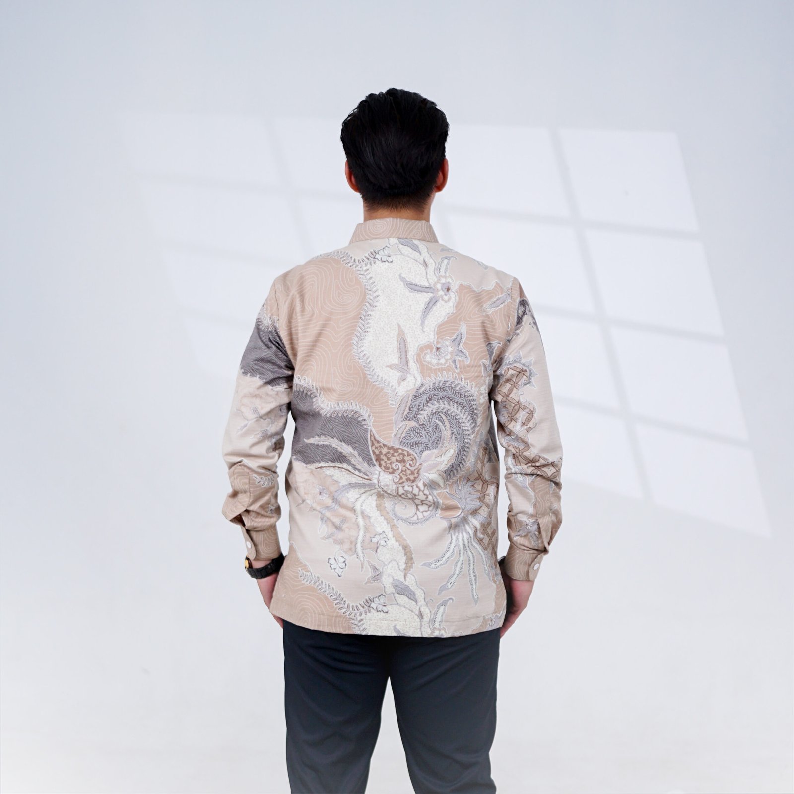 Kemeja Jumbo Reguler Batik Silk Cream KBT 22659A, lembut, adem, cocok untuk acara resmi, kantor, dan kegiatan semi formal.