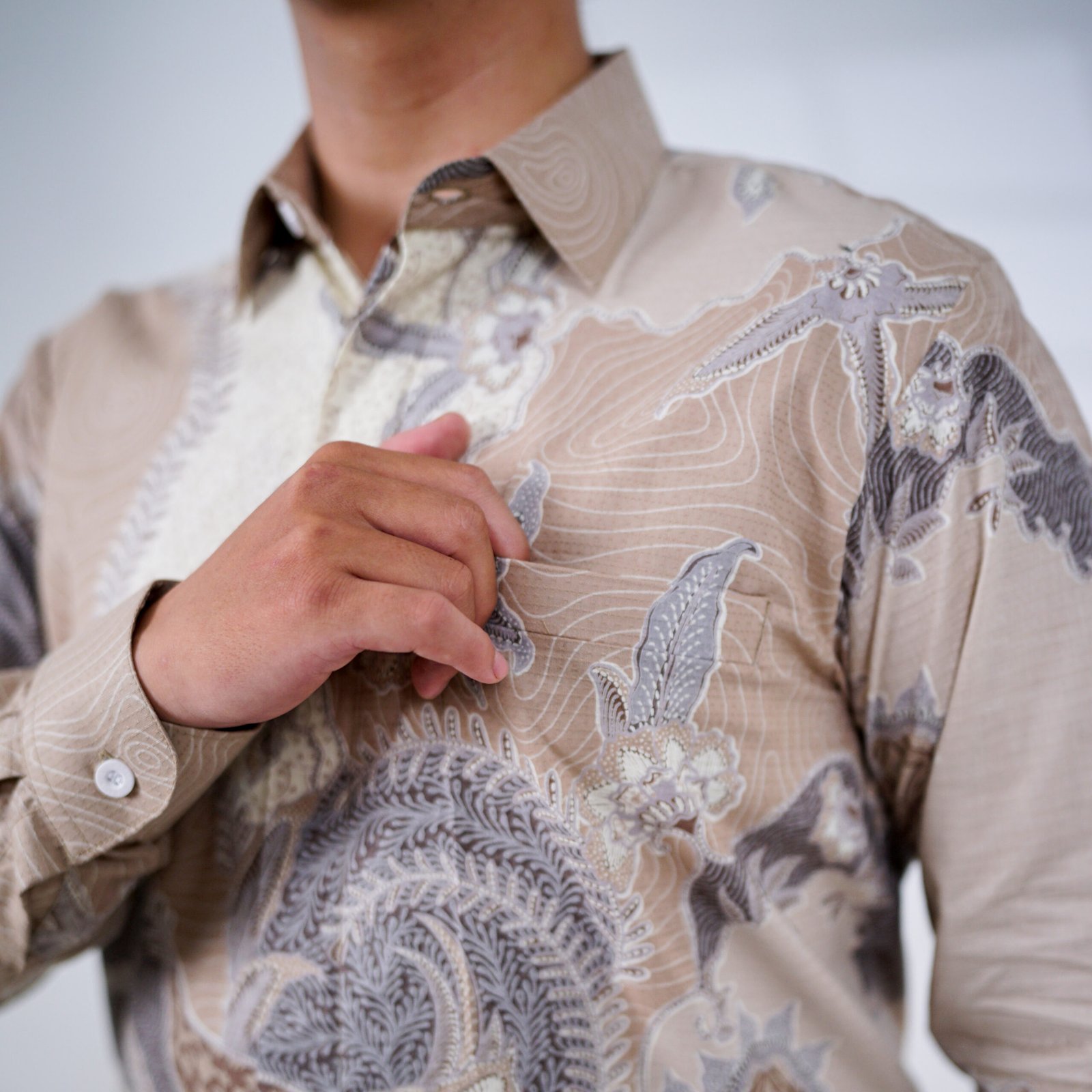 Batik Trusmi Kemeja Jumbo – Batik Silk Cream KBT 22659A