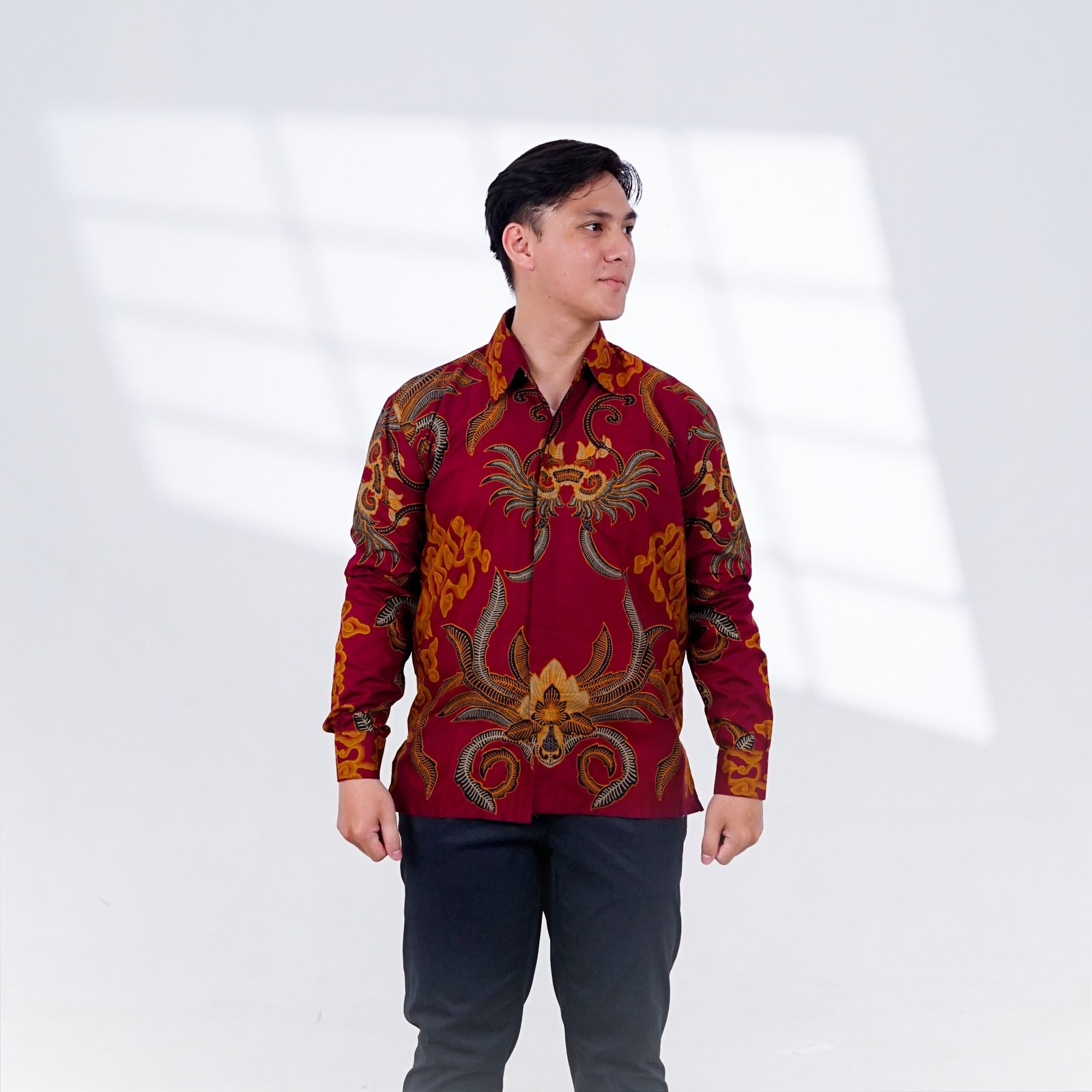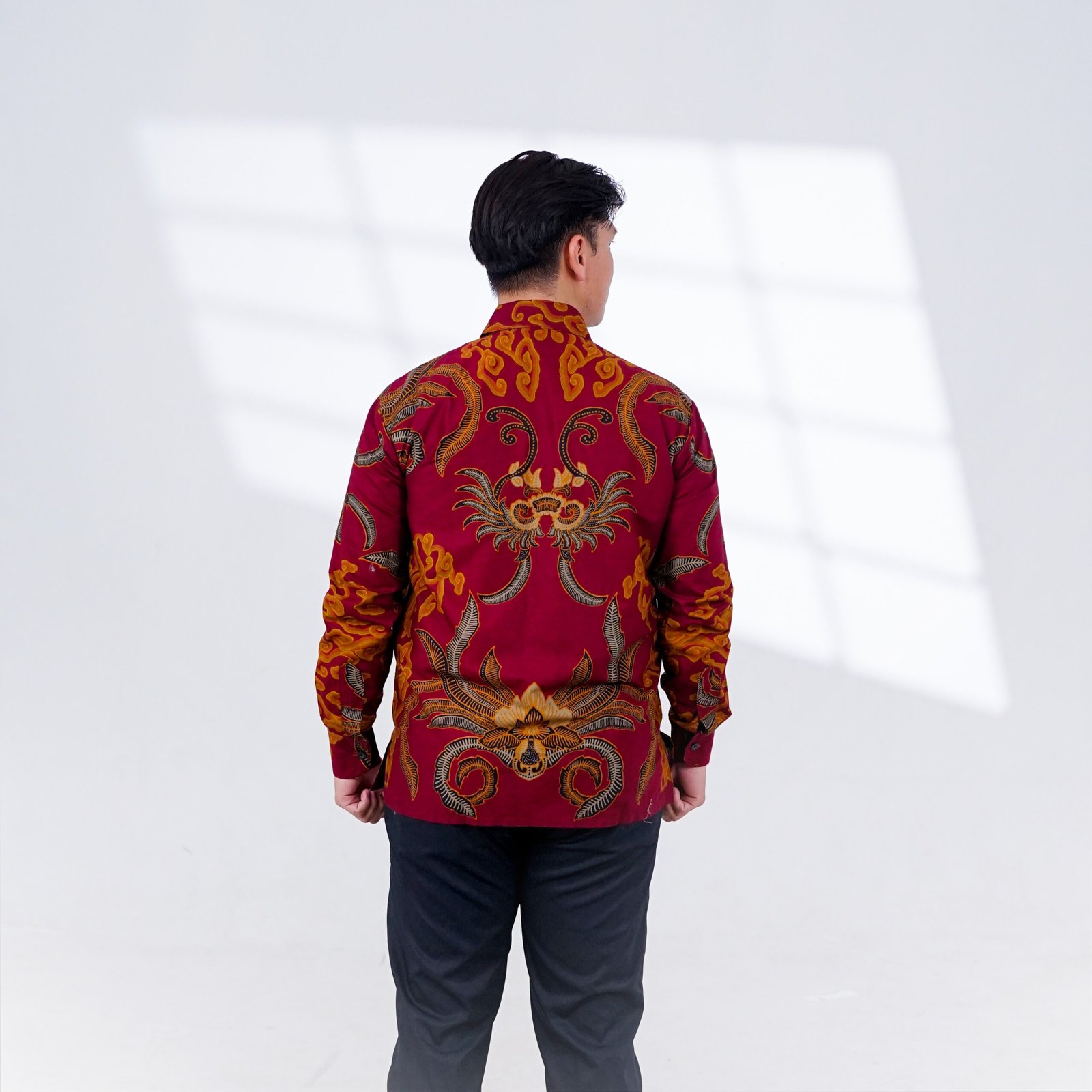 Jadilah yang pertama memberikan ulasan “Batik Trusmi Kemeja Katun Motif Harsa Merah”