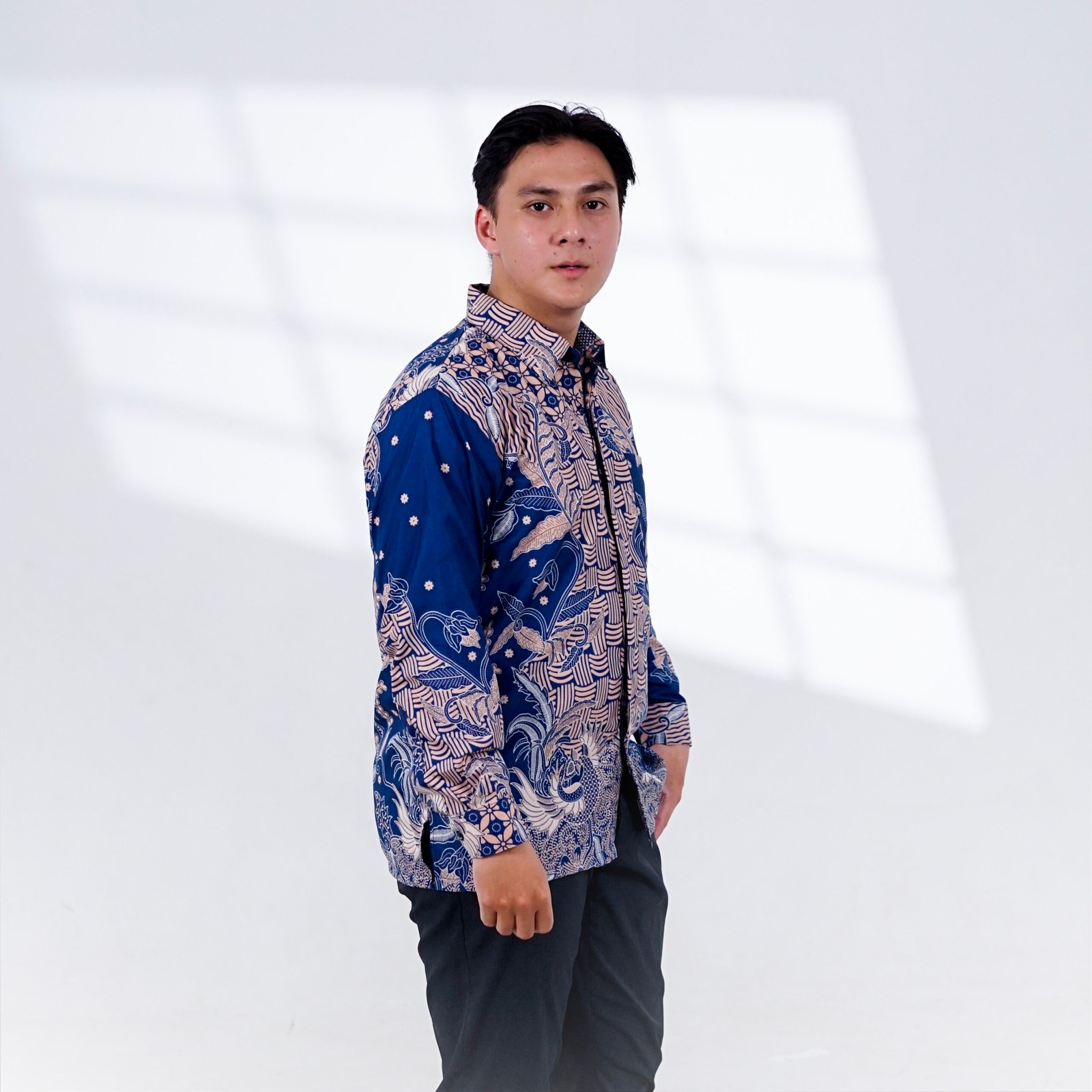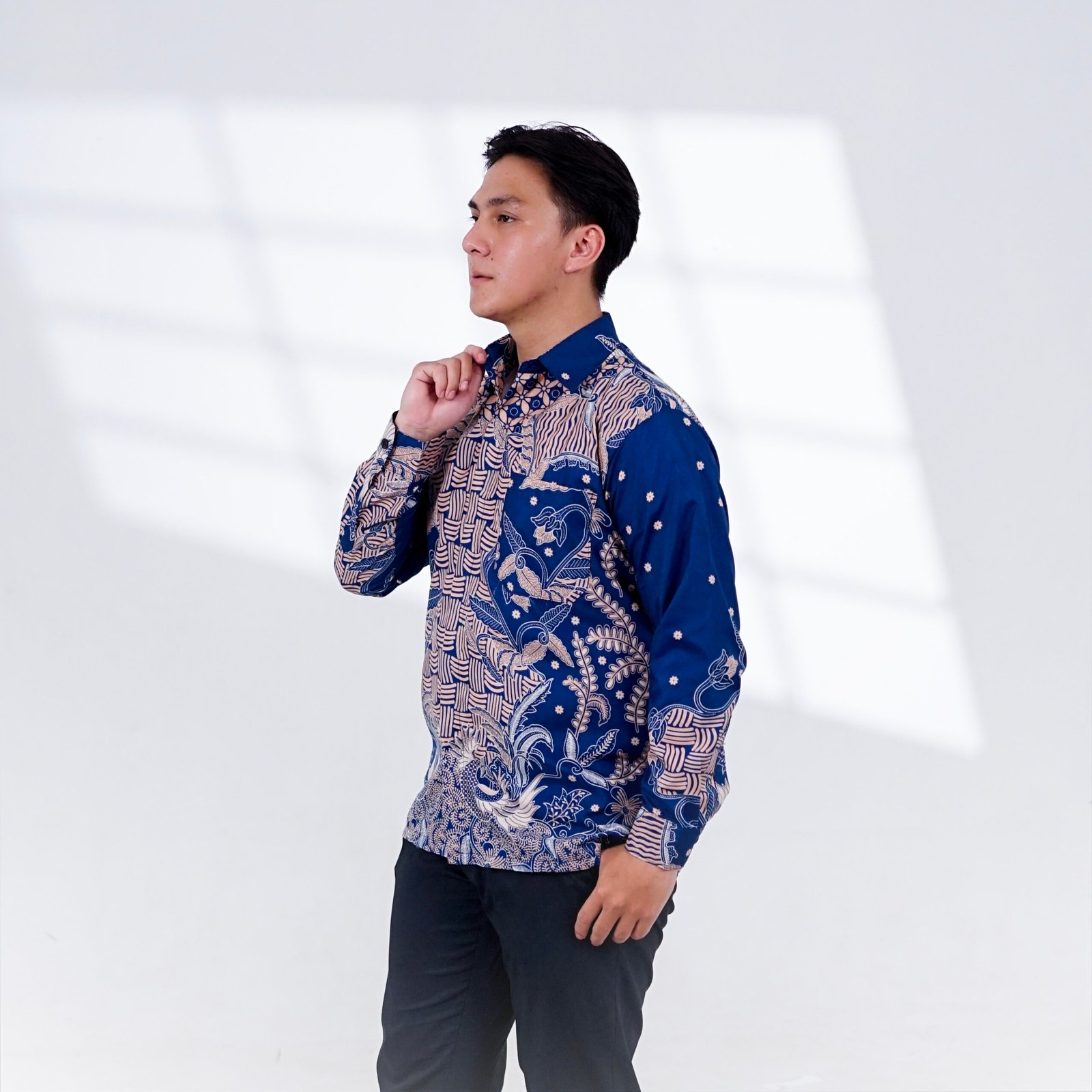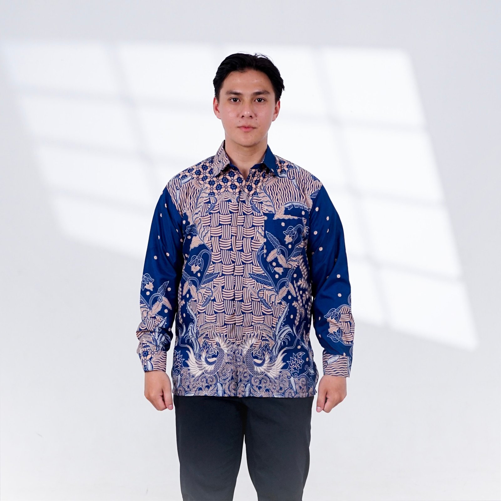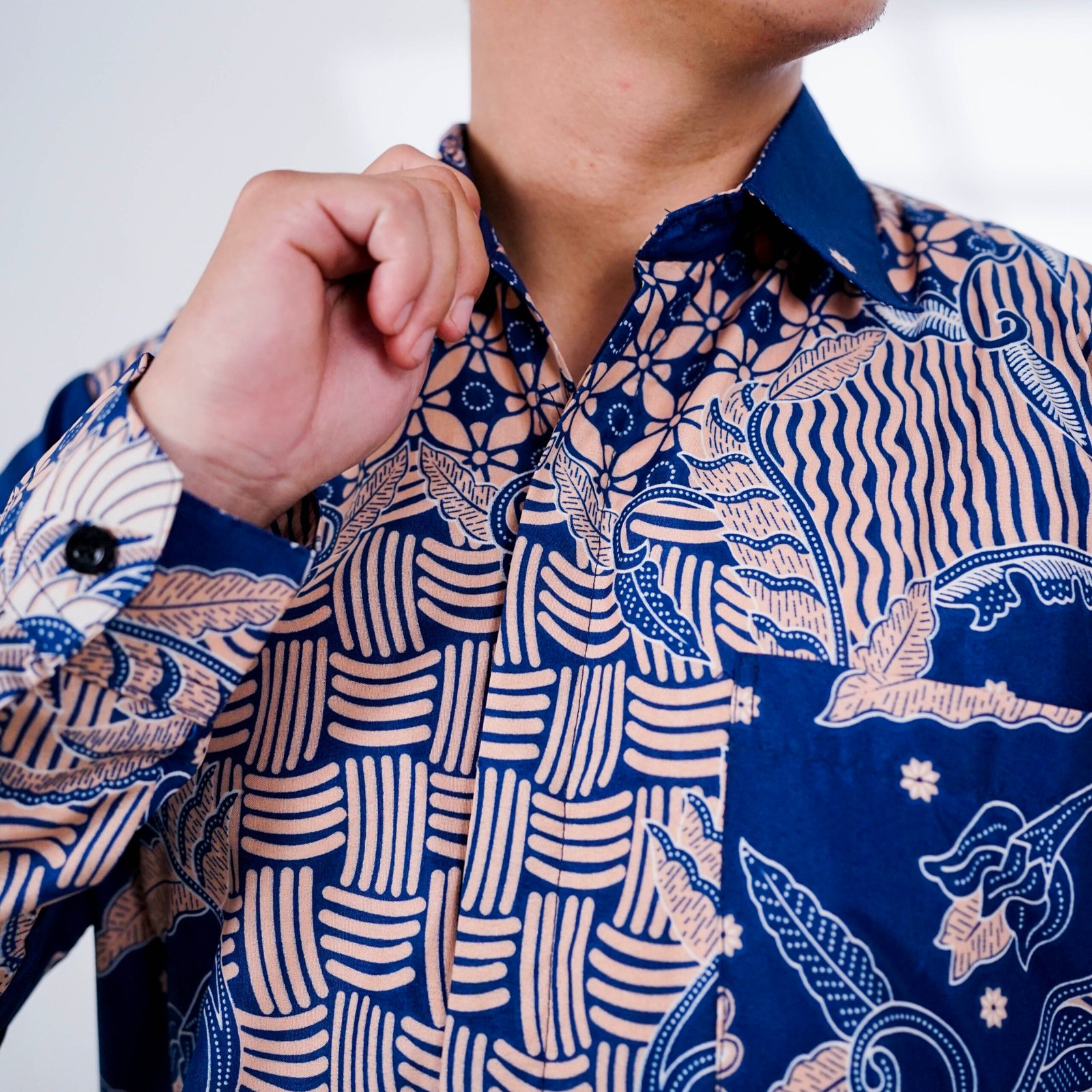 Kemeja Motif Kombinasi Gribik Bunga Biru BUL  ini dibuat menggunakan bahan berkualitas yang nyaman, ringan, dan tidak panas saat dipakai. Tekstur kain yang halus membuat kemeja ini nyaman digunakan untuk aktivitas harian maupun acara resmi. Potongan kemeja dirancang proporsional sehingga terlihat rapi saat dikenakan, baik untuk gaya formal maupun kasual.