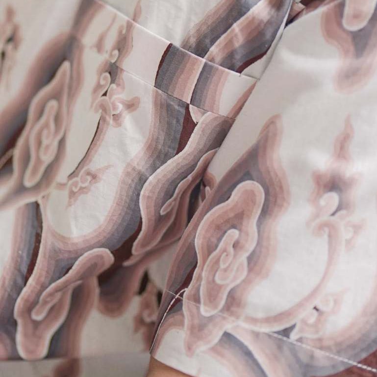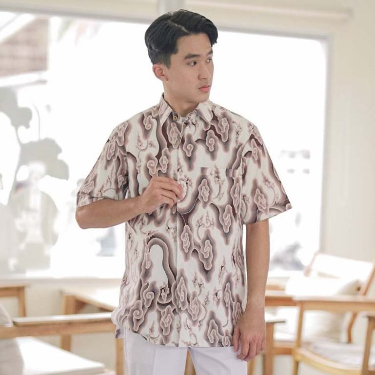 Kemeja Pria Motif Mega Mendung Putih menghadirkan filosofi keteduhan, kesabaran, dan kewibawaan dalam balutan warna putih yang bersih dan elegan.