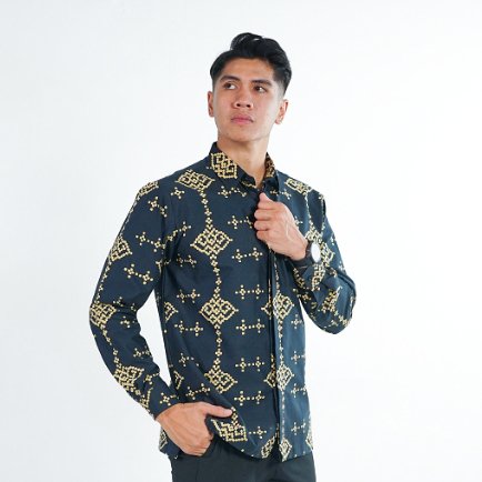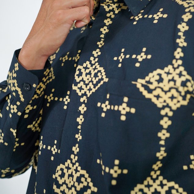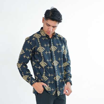 Batik Trusmi Kemeja Reguler Batik Pria Motif Light AAB Hitam KBT