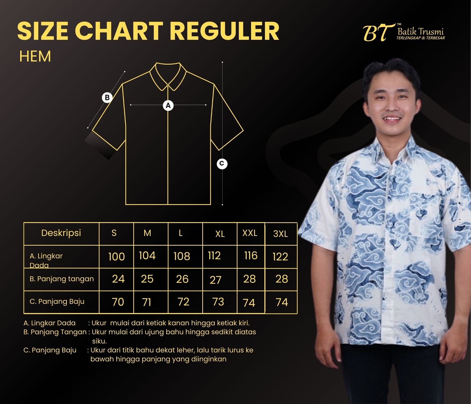 Kemeja batik ini dibuat dari bahan katun berkualitas tinggi, yang adem, ringan, dan nyaman dipakai sepanjang hari. Kainnya lembut di kulit serta memiliki sirkulasi udara yang baik, sehingga ideal untuk aktivitas kerja, acara formal, maupun kegiatan santai.