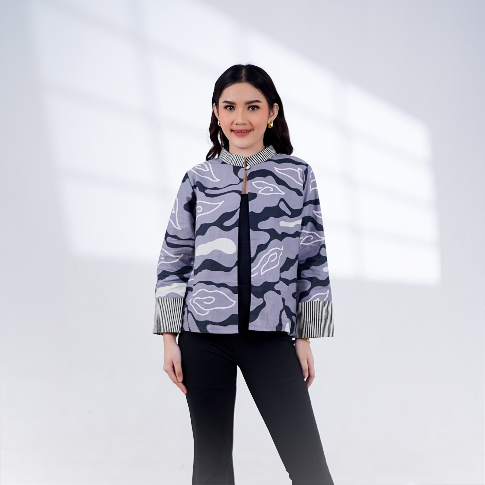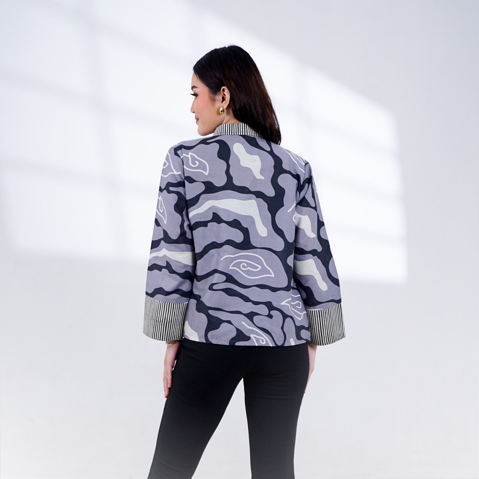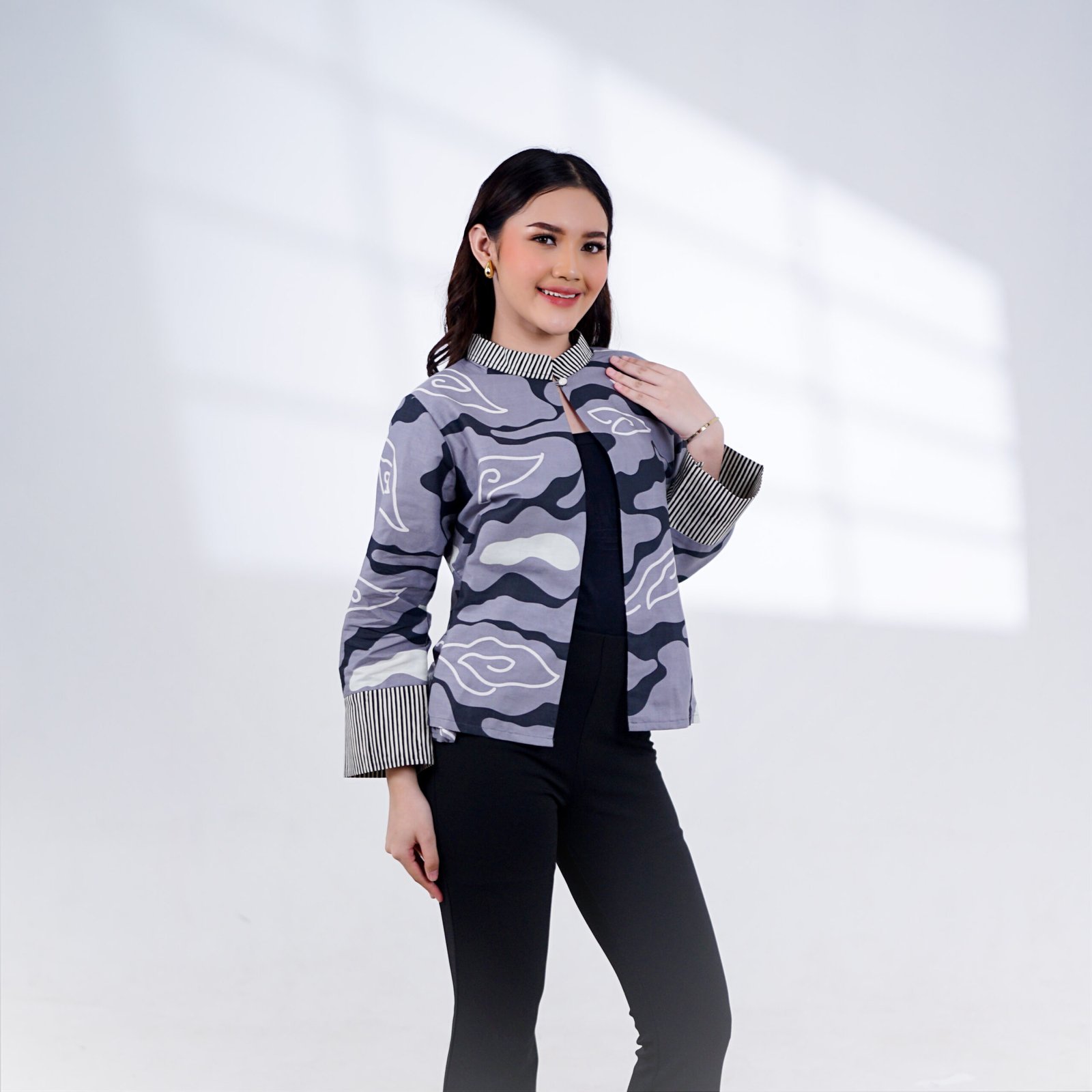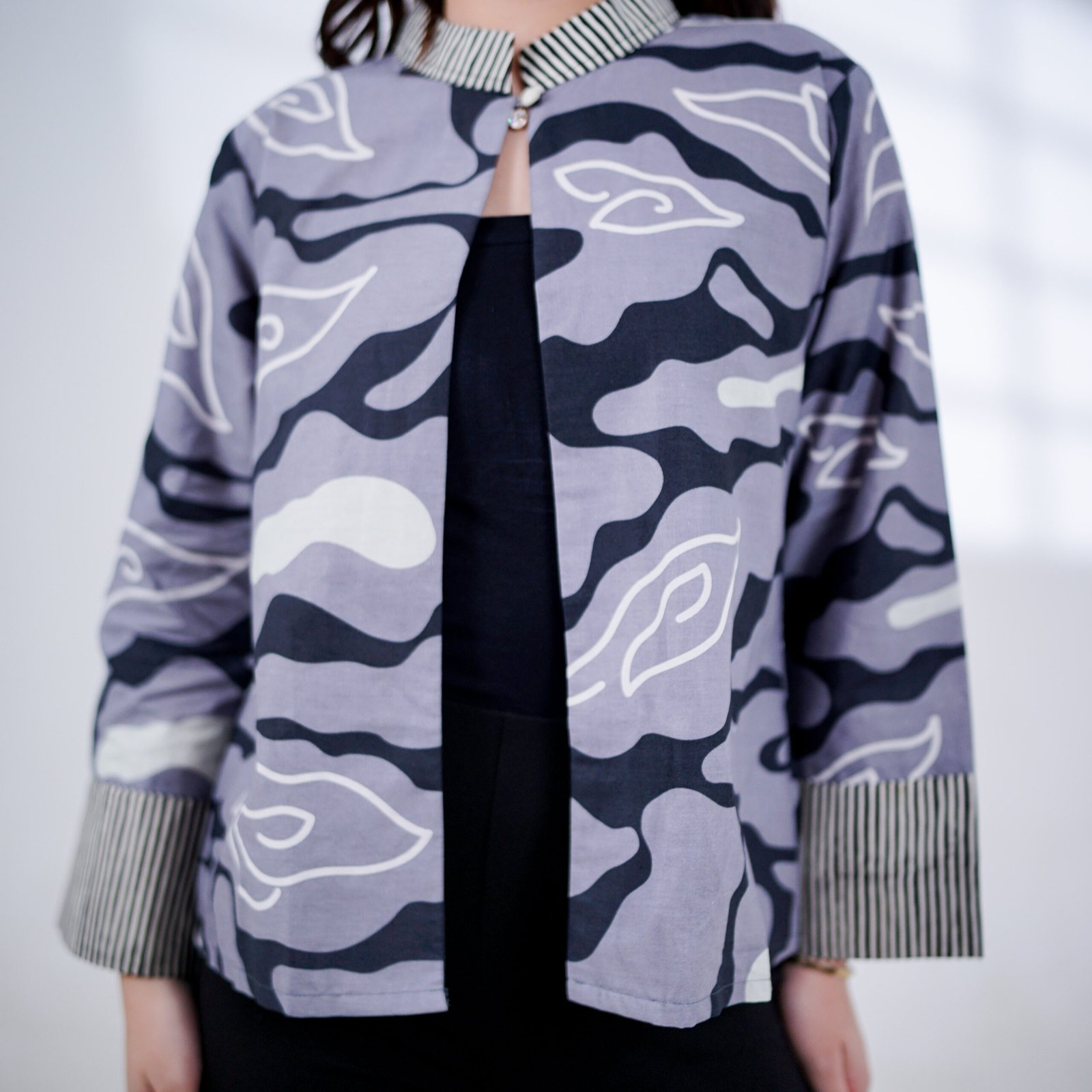 Outer Cetta menampilkan motif khas batik yang elegan dengan warna hitam dominan yang memancarkan kesan tegas dan berwibawa.