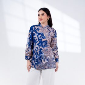 Batik Trusmi Blouse Batik Motif Gribik Bunga Biru BUL
