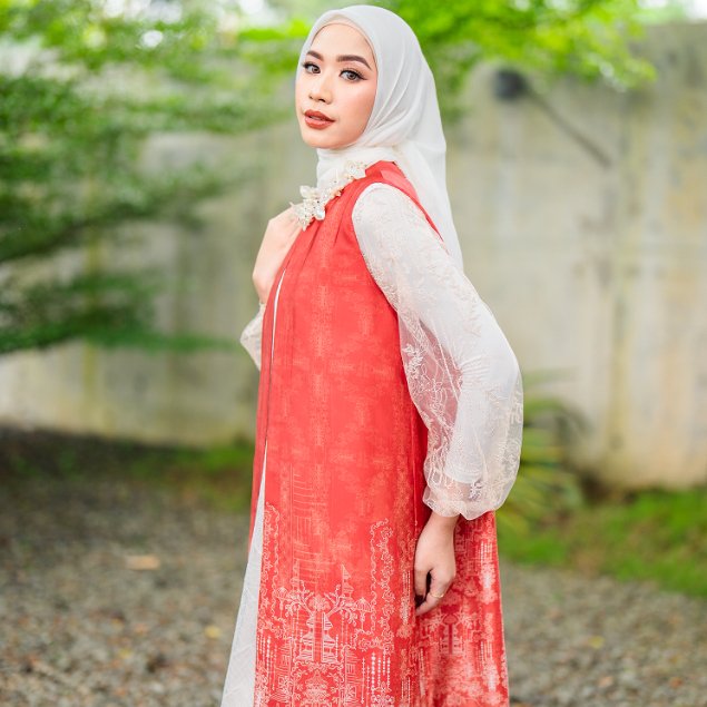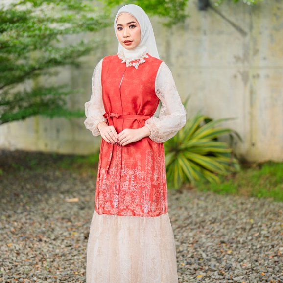 Desainnya yang memadukan keanggunan satin premium dengan detail lace transparan berbordir di bagian bawah dan lengan, menjadikan outer ini pilihan sempurna untuk menambah sentuhan mewah pada tampilan Ramadhan dan Lebaran Kamu. Warna Orange lembut yang menenangkan berpadu indah dengan detail bordir putih yang feminin dan klasik. Potongan panjangnya memberikan siluet ramping dan anggun, ideal dipadukan dengan dress polos atau inner berwarna netral.
