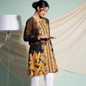Motif batik kombinasi yang berpadu harmonis dengan warna kuning cerah menciptakan kesan ceria, segar, dan penuh energi. Terbuat dari bahan berkualitas tinggi yang lembut dan nyaman.