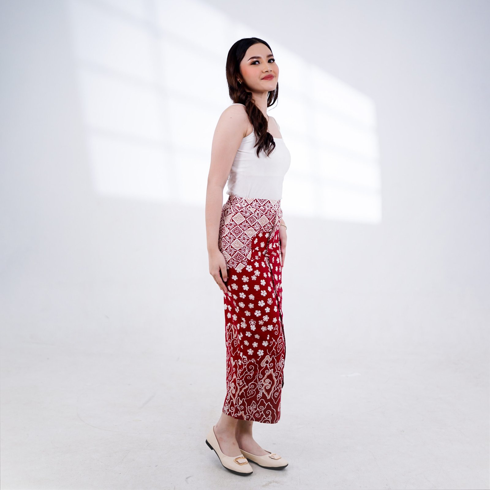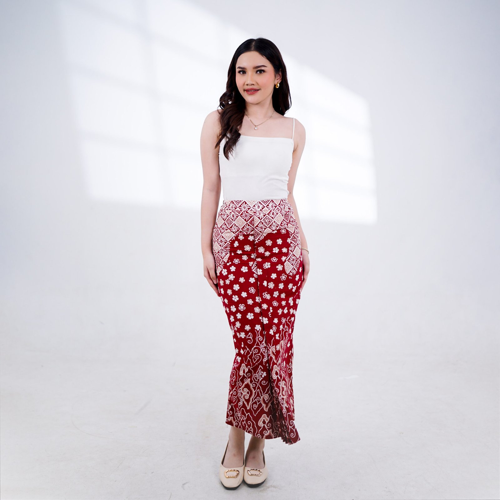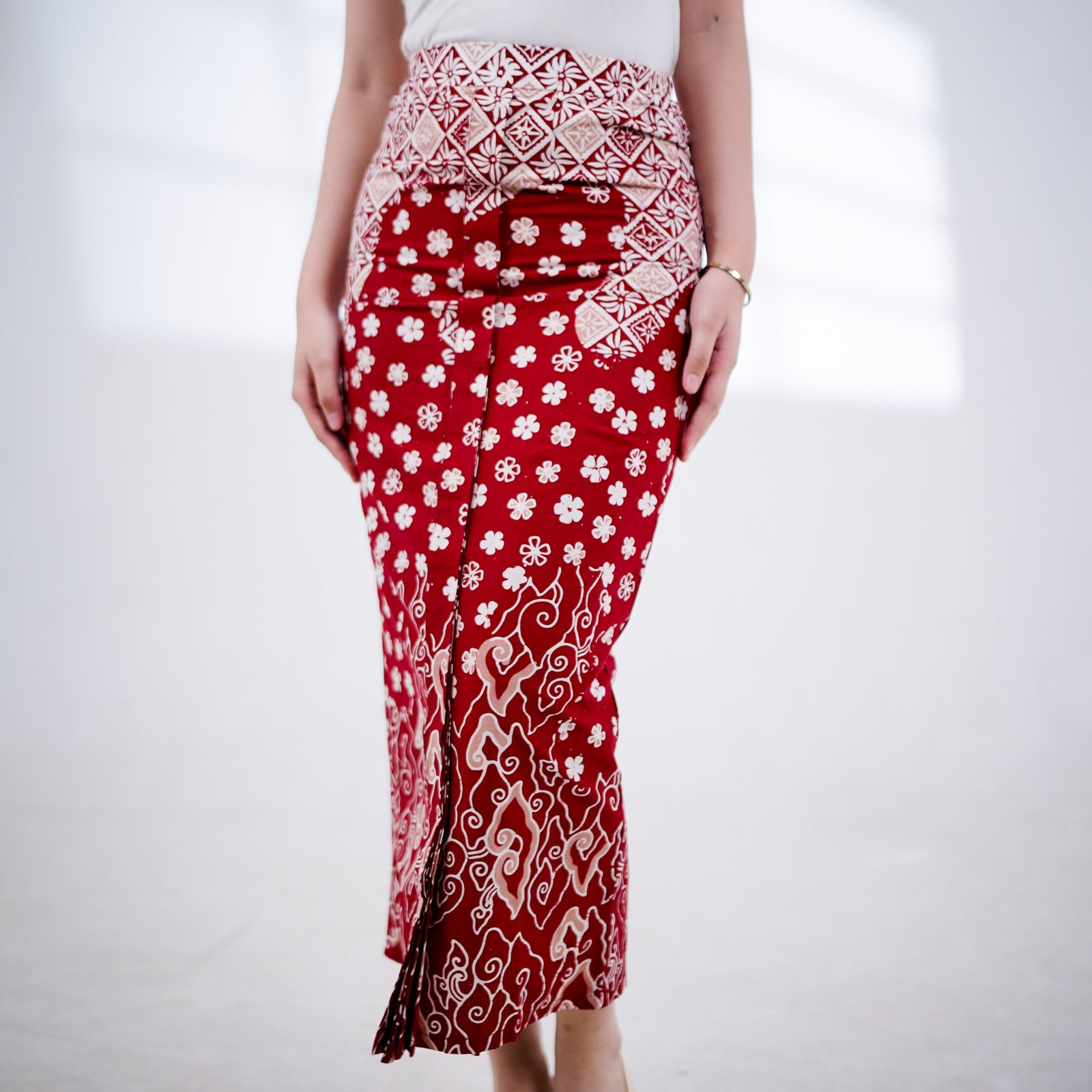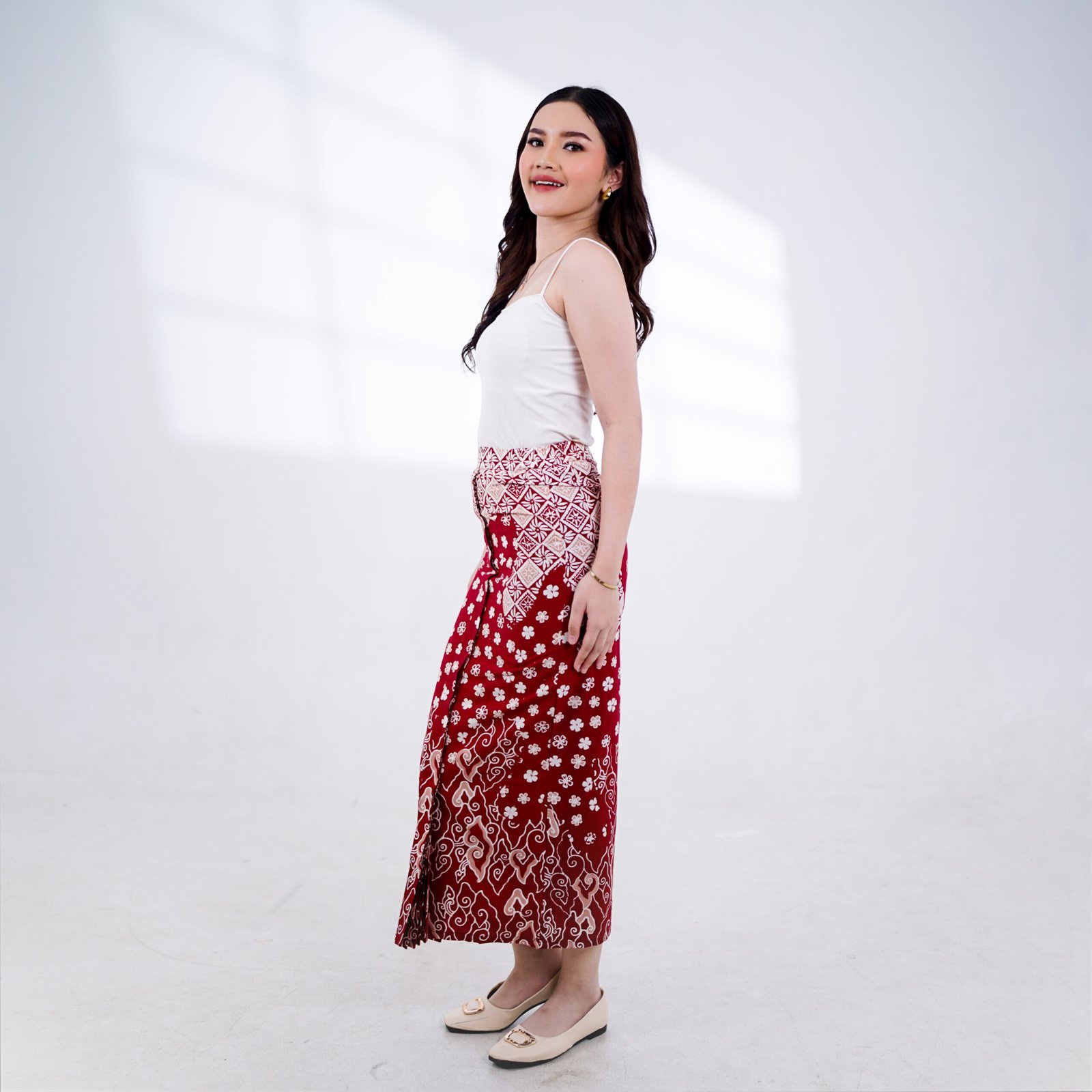 Motif Kirbung Merah yang khas melambangkan semangat dan keanggunan, membuat pemakainya tampil percaya diri di berbagai kesempatan. Potongan rok yang elegan dengan detail jahitan rapi menjadikannya cocok untuk acara formal, kerja, hingga gaya kasual harian.