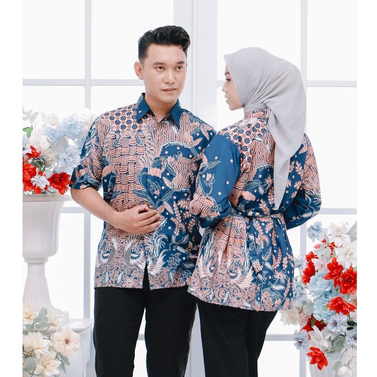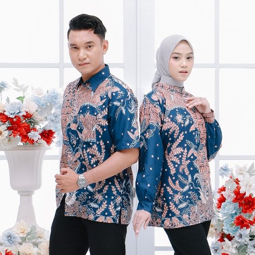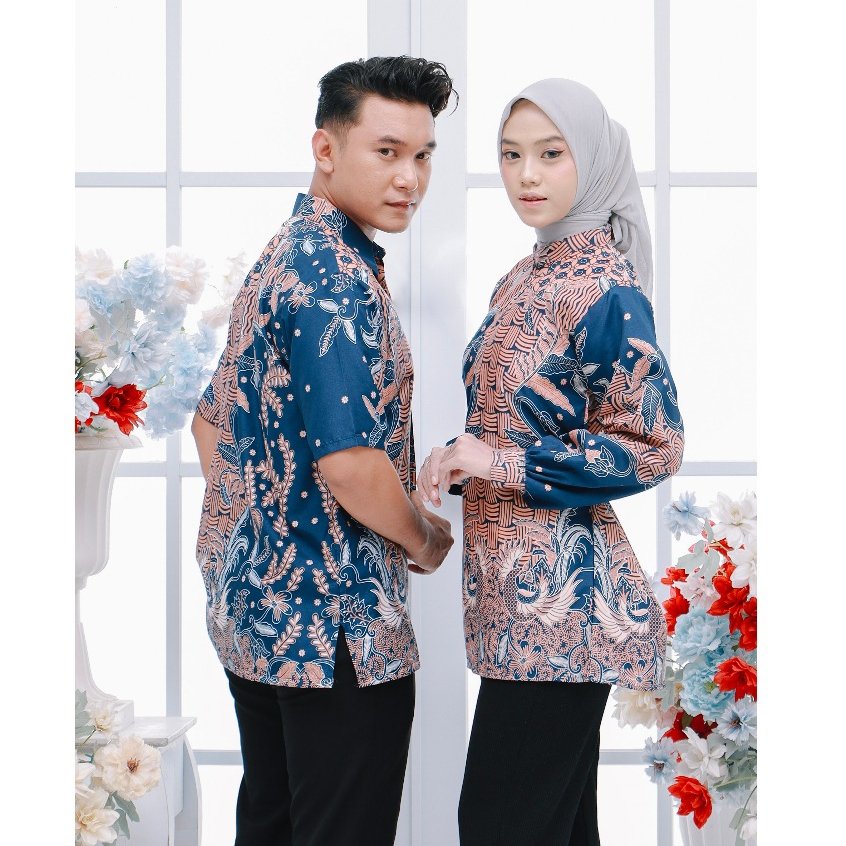 Batik Trusmi Set Couple Kemeja Pria & Outer Motif Aokiji Biru RML