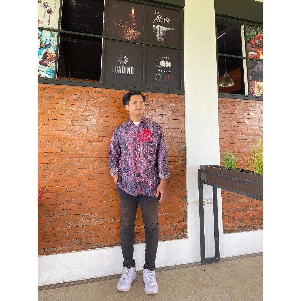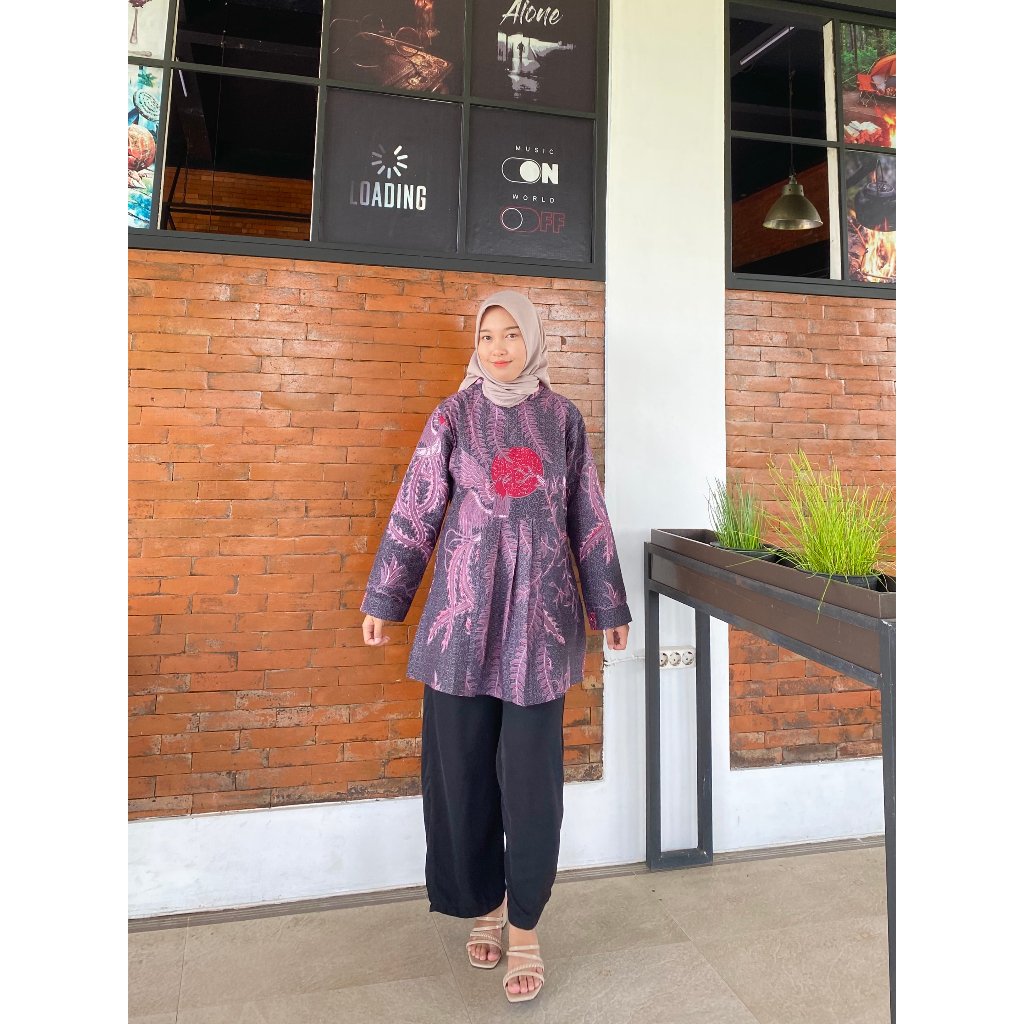 Batik Trusmi Set Couple Kemeja Pria & Blouse Batik Gama Ungu