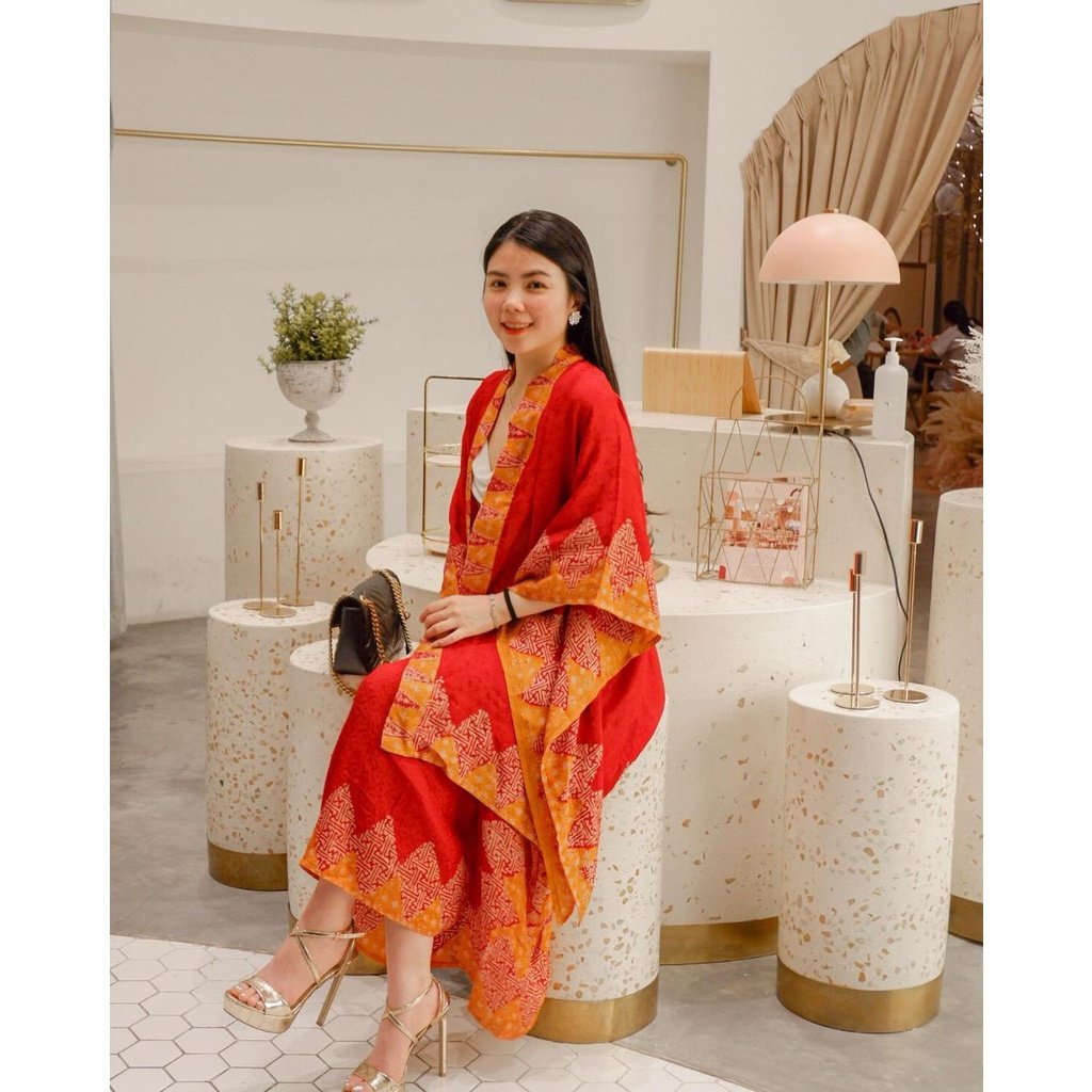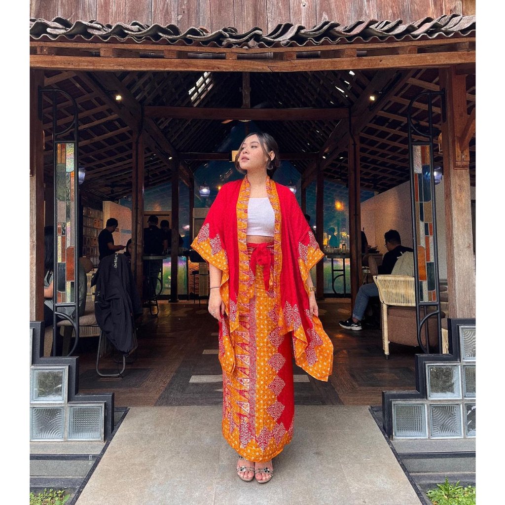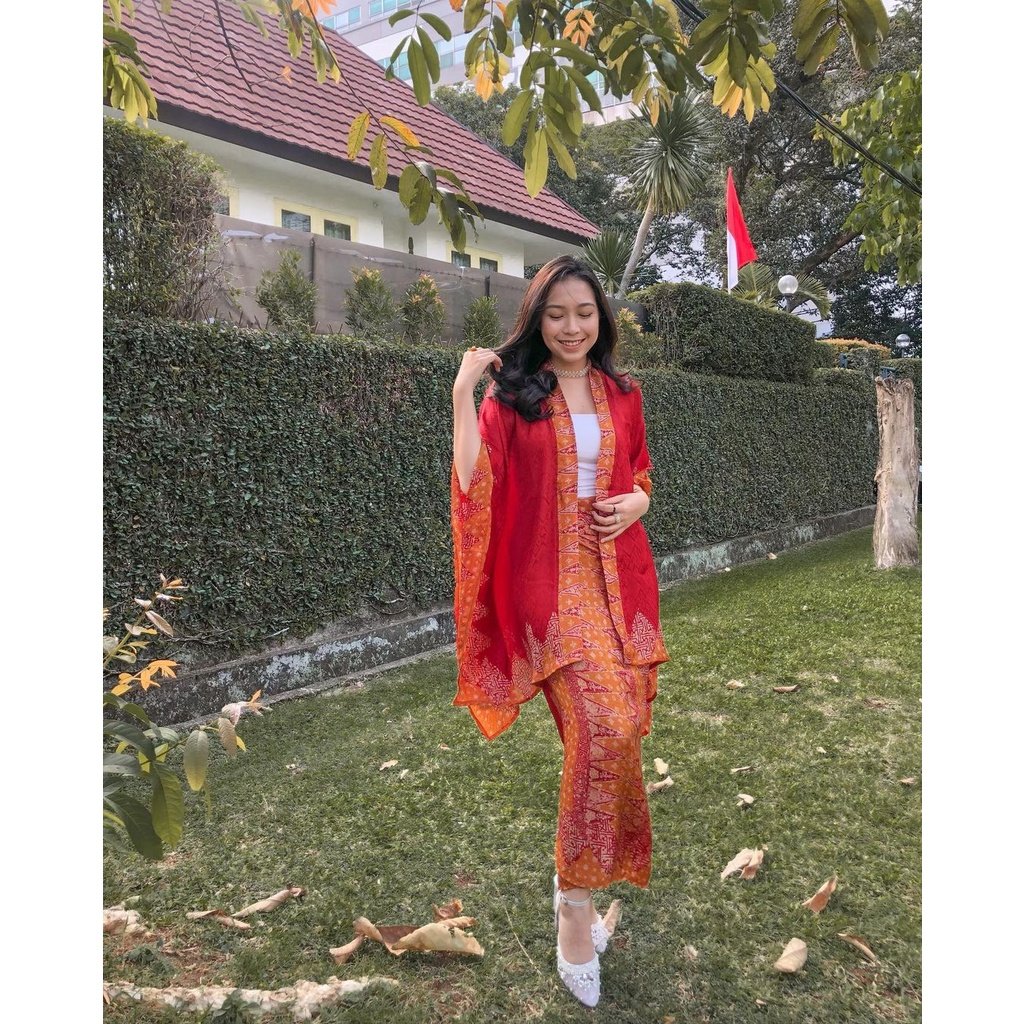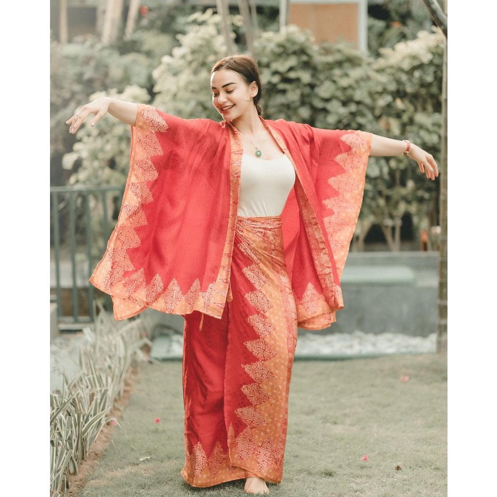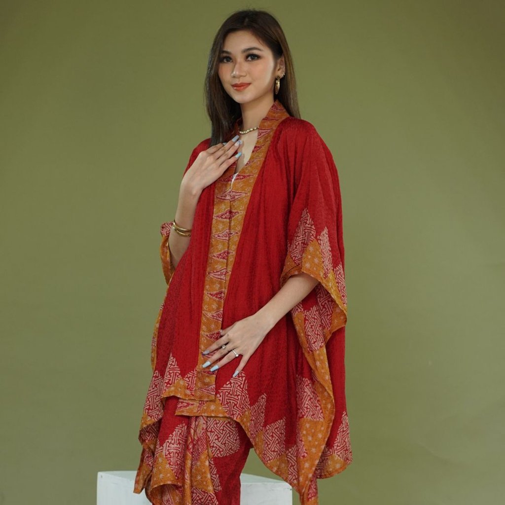 Batik Trusmi Setelan Outer Rok Lilit Viscose Set Kombinasi Merah