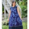 Batik Trusmi Dress Panjang Kiraya Ramadhan – Koleksi Garatris Series Satin Premium Plisket Biru