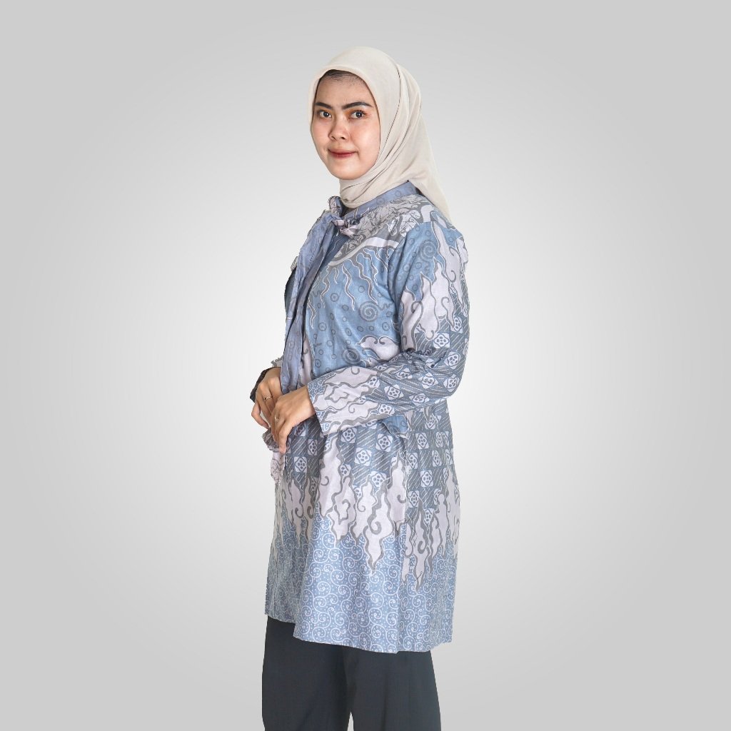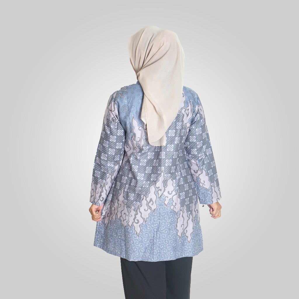 Tampilkan gaya elegan dan profesional dengan atasan wanita tunik batik Mega Mendung Sekai abu. Desain khas Mega Mendung yang ikonik dipadukan dengan sentuhan modern menciptakan tampilan yang anggun dan berkelas.Atasan tunik batik kerja Mega Mendung Sekai abu, elegan, nyaman dipakai, cocok untuk kerja dan acara formal.