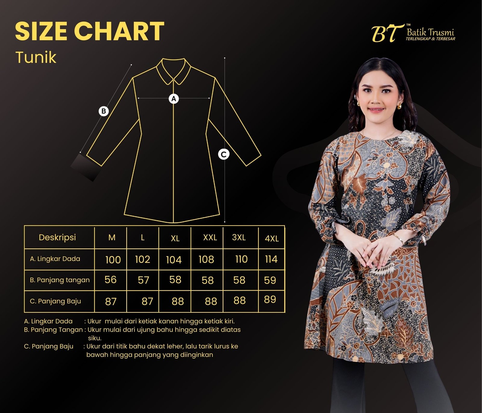 Desainnya yang modern berpadu dengan motif batik khas Trusmi, menghadirkan nuansa etnik yang tetap modis. Potongan longgar dan jatuh sempurna di badan, cocok dipakai untuk ke kantor, acara resmi, hingga kegiatan santai bersama keluarga.