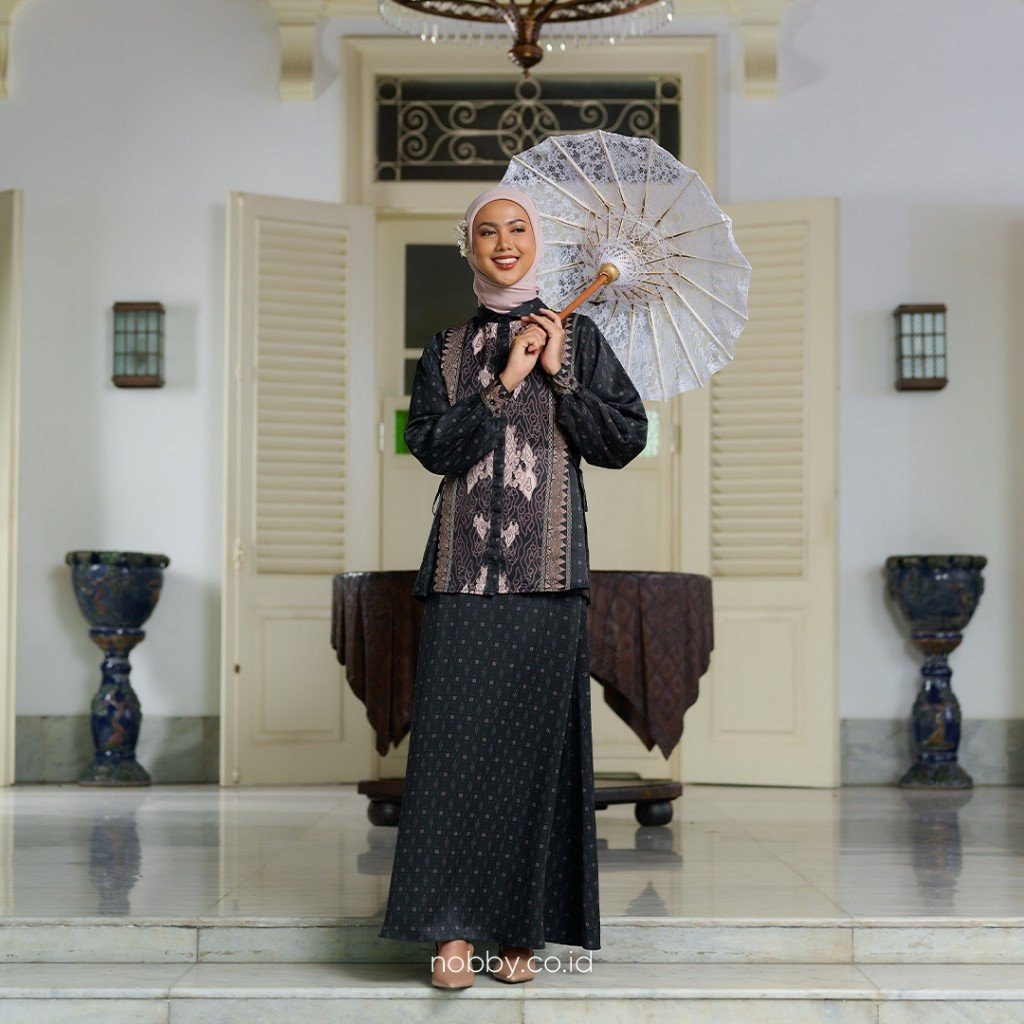 Batik Trusmi Outer Panjang Motif Vivian AAB Hitam MYD